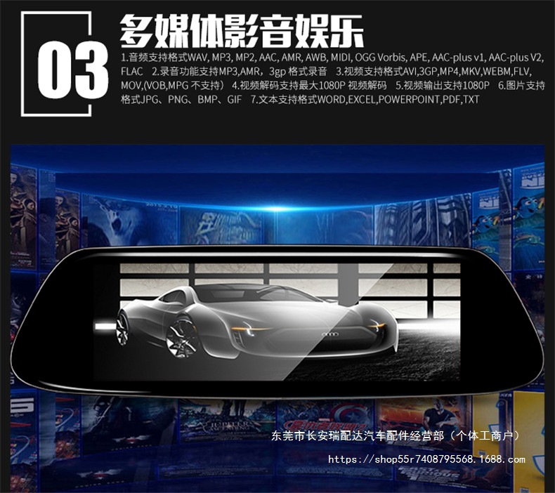 Bluetooth, WIFI, доступ в Интернет, GPS-навигация, позиционирование, идентификатор вызывающего абонента, измерение скорости мобильного телефона, 3D-карта, FM-передача, система раннего предупреждения, камера заднего вида