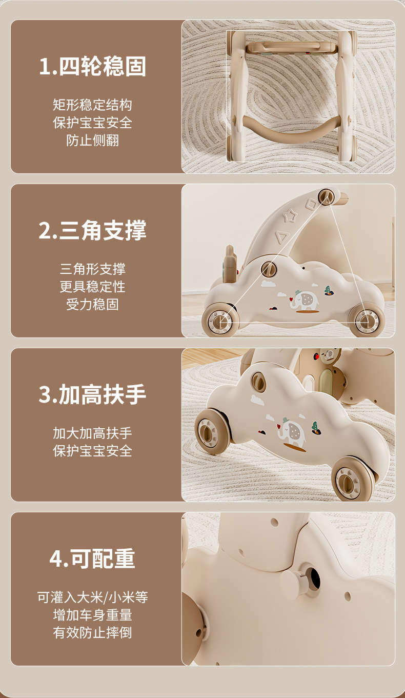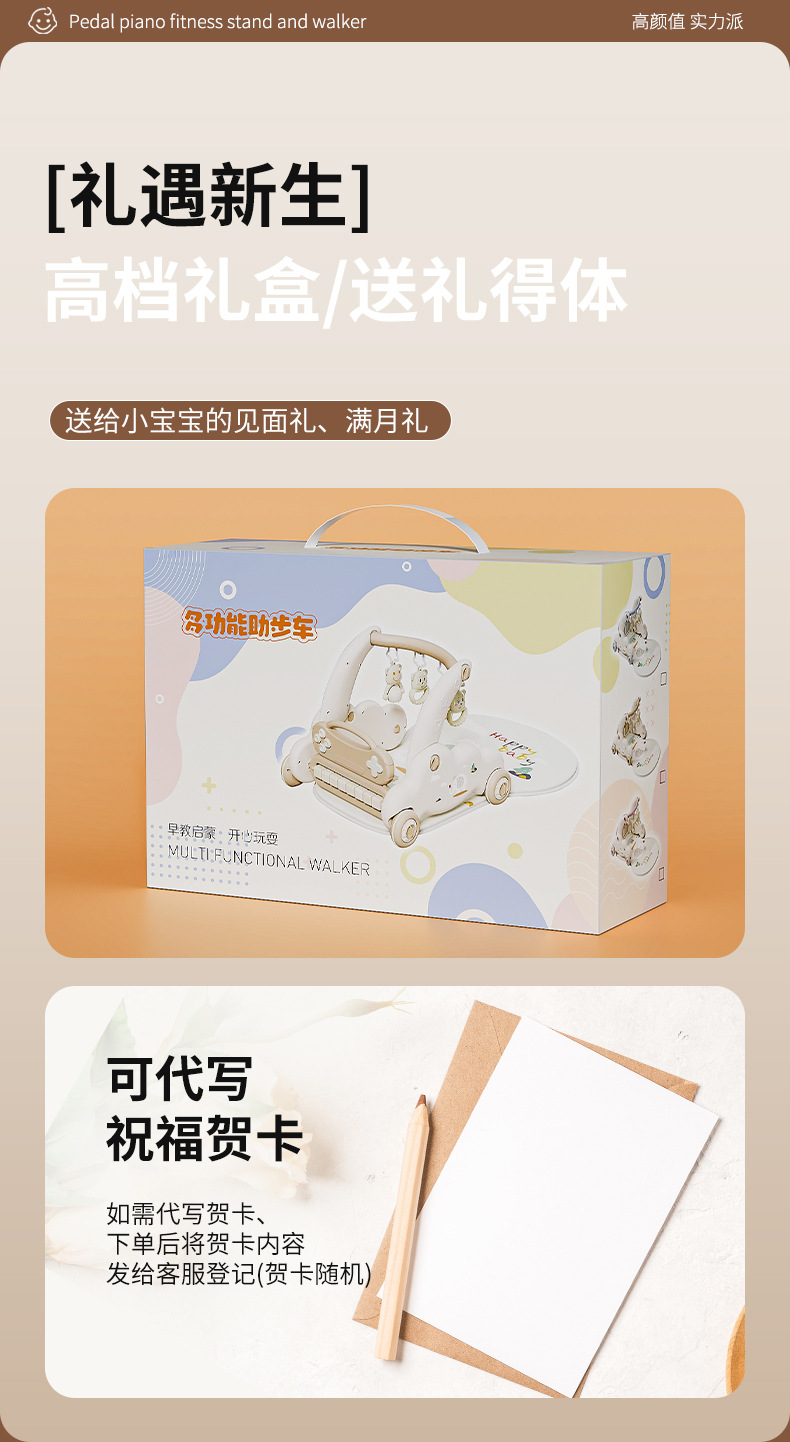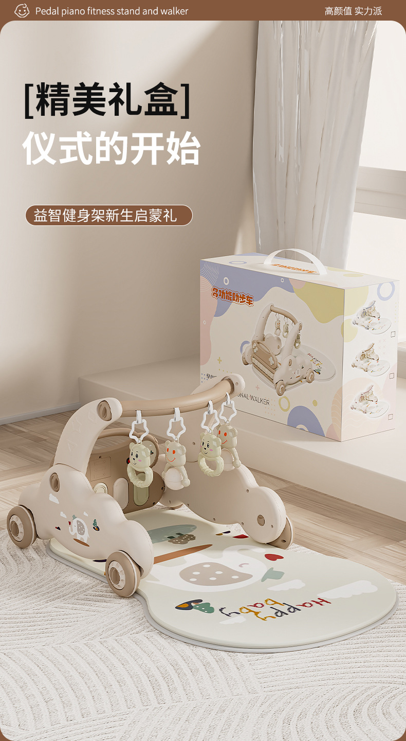Многофункциональный пластиковый ходунок-каталка 2-в-1 для малышей, с педалями, в подарочной упаковке