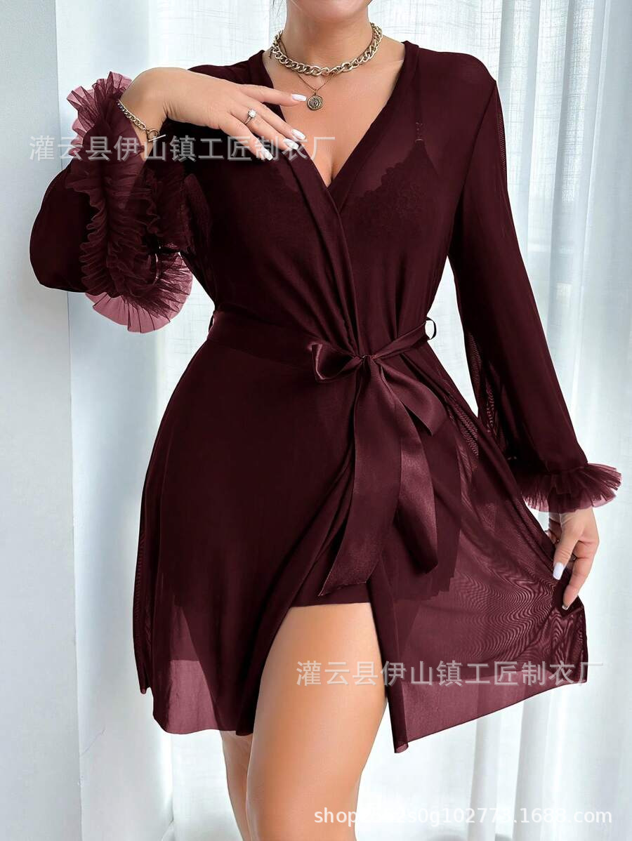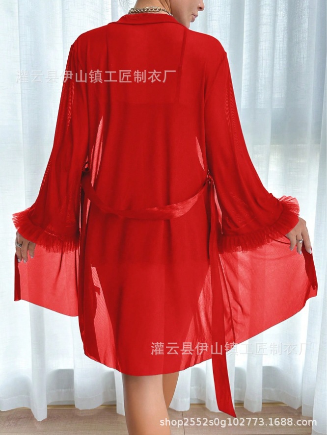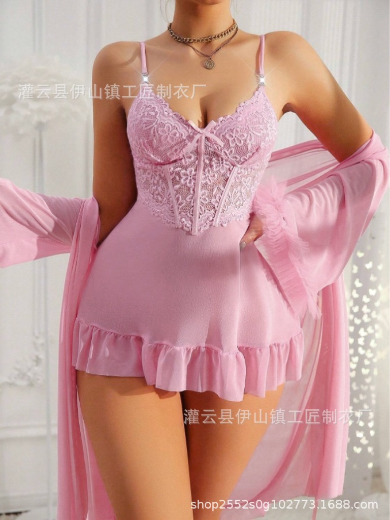 Трансграничное летнее женское новое сексуальное женское белье, ночная рубашка, трансграничная сексуальная кружевная прозрачная ночная рубашка с искушением, комплект кружевных подтяжек