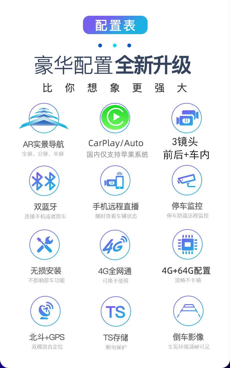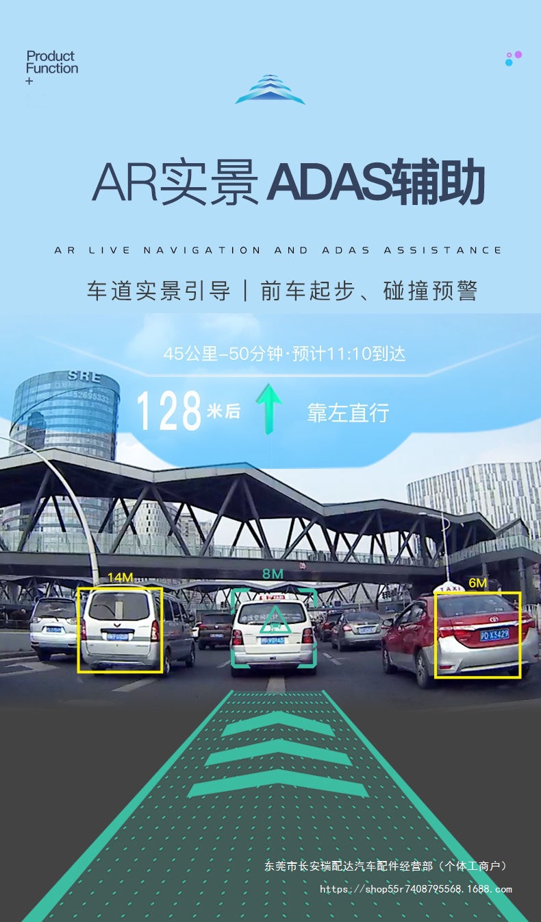 Циклическая запись, Bluetooth, напоминание о знаке ограничения скорости, изображение заднего хода, предупреждение о столкновении с передним автомобилем, GPS-навигация, измерение фиксированной скорости, мониторинг парковки, помощь при смене полосы движения, пешеходы