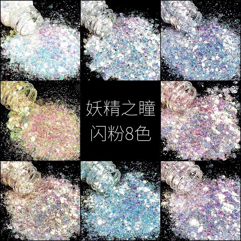 Fairy Eyes-Кристально-белый 20мл; Fairy Eyes-Волшебное золото 20мл; Феи Глаза-Мечта 20мл; Fairy Eyes-Шампанское 20мл; Сказочные глаза-Стример 20мл; Волшебные глаза-Аква 20мл; Сказочные глаза-Xingyu 20мл; Fairy Eyes-Светло-фиолетовый 20мл; 8-цветный блеск Fairy Eyes (20 мл)
