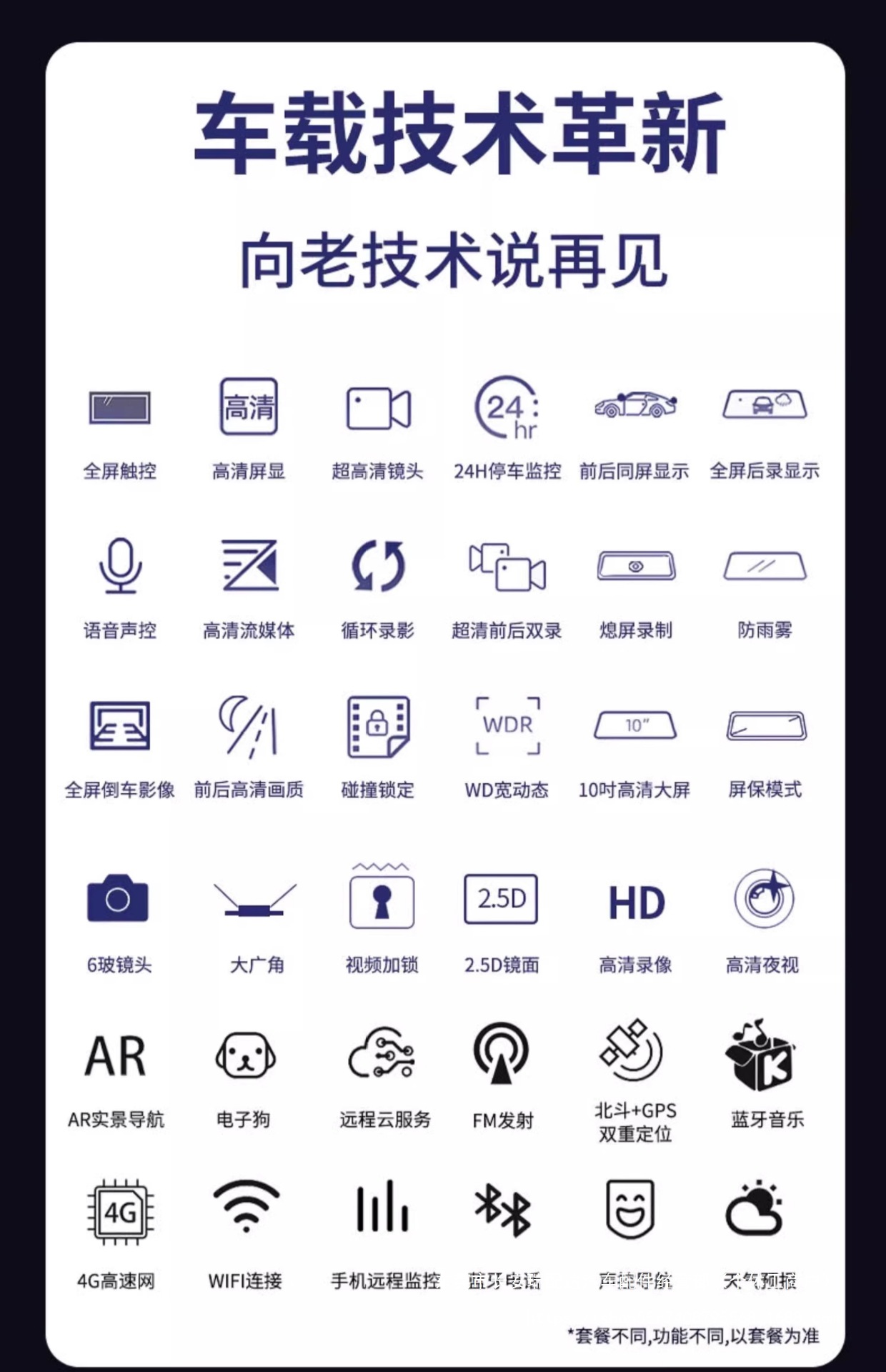 Сверхвысокое разрешение 2K + мониторинг парковки + голосовое управление + соединение мобильного телефона + (требуется самонастраиваемая карта); Сверхвысокое разрешение 2K + мониторинг парковки + голосовое управление + соединение мобильного телефона + карта 64G; Сверхвысокое разрешение 2K + мониторинг парковки + голосовое управление + соединение мобильного телефона + карта 128G; Сверхвысокое разрешение 2K + мониторинг парковки + голосовое управление + соединение мобильного телефона + электронная собака + карта 64G; Сверхвысокое разрешение 2K + мониторинг парковки + голосовое управление + соединение мобильного телефона + электронная собака + карта 128G; Сверхвысокое разрешение 4K + мониторинг парковки + голосовое управление + соединение мобильного телефона + карта 64G; Сверхвысокое разрешение 4K + мониторинг парковки + голосовое управление + соединение мобильного телефона + карта 128G; Интеллектуальная универсальная машина с AR-навигацией + мониторинг парковки + голосовое управление + удаленная связь с мобильным телефоном + карта 64G; Интеллектуальная универсальная машина с AR-навигацией + мониторинг парковки + голосовое управление + удаленная связь с мобильным телефоном + карта 128G