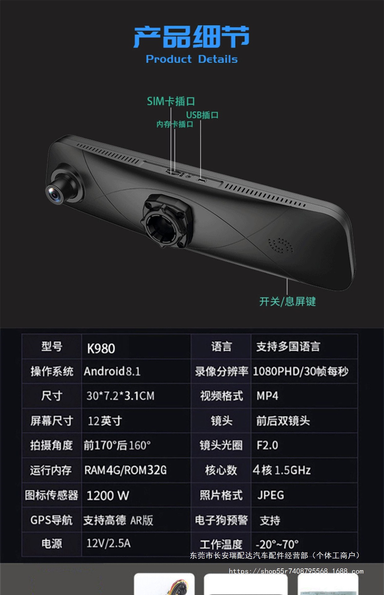 12inch новая модель рекордера для вождения AR, навигация по реальной сцене, умное облачное зеркало, потоковое зеркало заднего вида, электронная собака, аксессуары Yirui