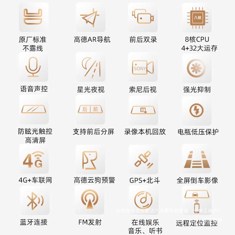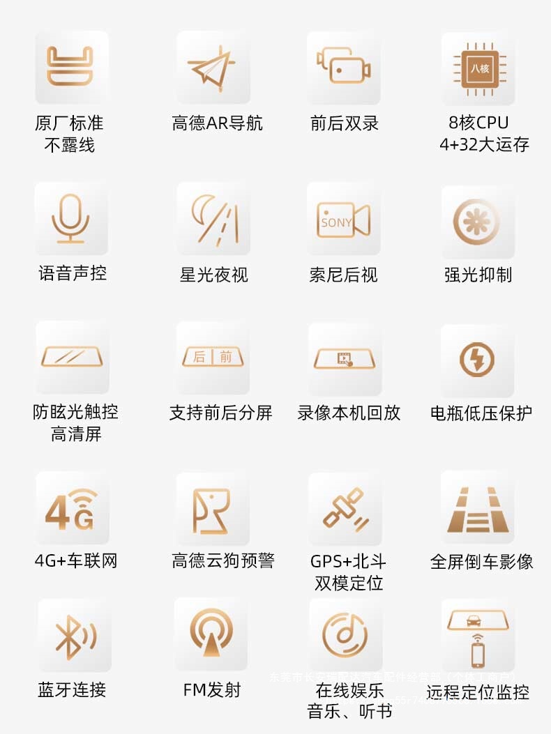 Улучшенное ночное видение, циклическая запись, Bluetooth, реверсивное изображение, GPS-навигация, измерение фиксированной скорости, мониторинг парковки, помощь при смене полосы движения, другое/другое позиционирование