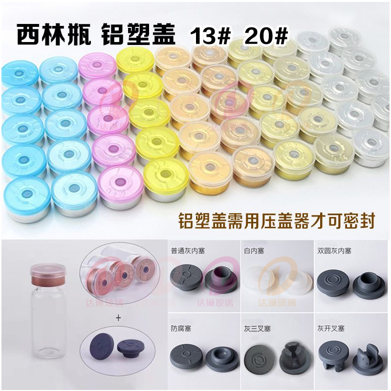 Бутылка калибра 20, специальная пробка из бутилкаучука, резиновая пробка для бутылки Cillin, алюминиевая пластиковая крышка с 13 зубцами для сублимированного порошка, Гуанчжоу Байюнь