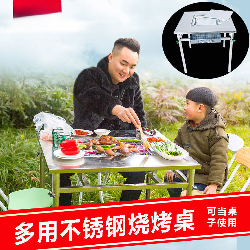Уличный стол для барбекю из нержавеющей стали, стол для угольного гриля, квадратный стол для ночного рынка, хороший стальной угольный портативный складной стол