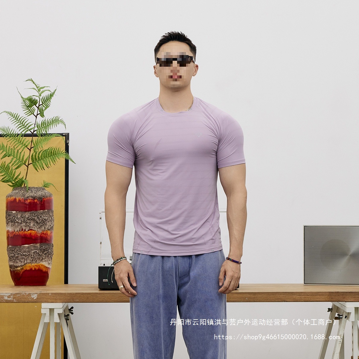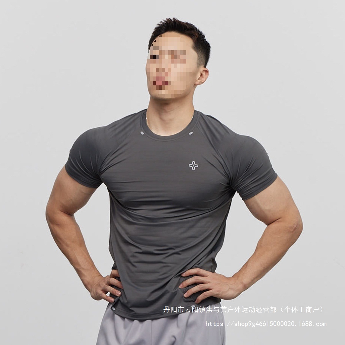 Базовая единица Базовая единица Летняя тонкая эластичная спортивная футболка с короткими рукавами Мужская оптовая продажа для фитнеса