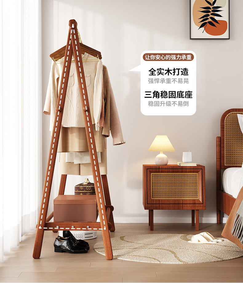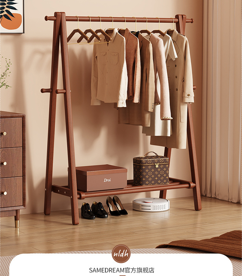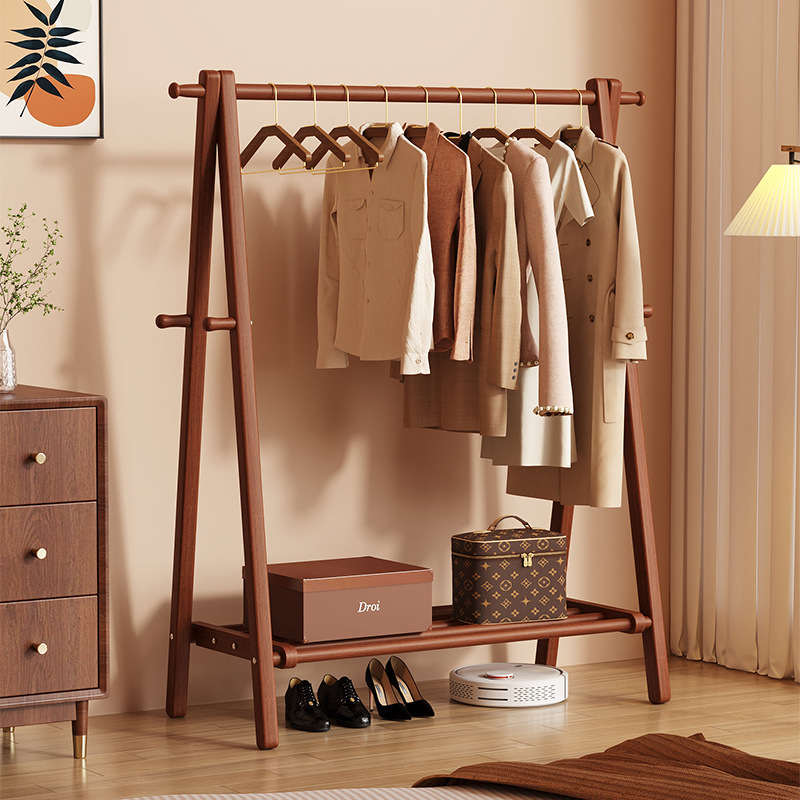 Бытовая вешалка для одежды, утолщенная стойка для хранения, простая вертикальная сушилка для одежды, вешалка для одежды из цельного дерева, напольная вешалка для спальни