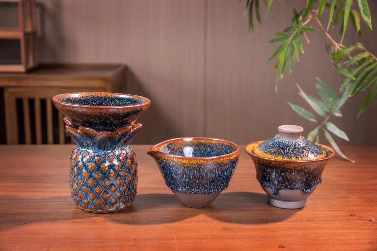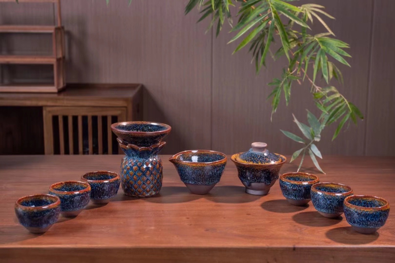 Jianyang Shuiji Jianjan Ceramics Cao Weijun Golden Silk Blue Peacock Tea Set Set экономически эффективный дренаж