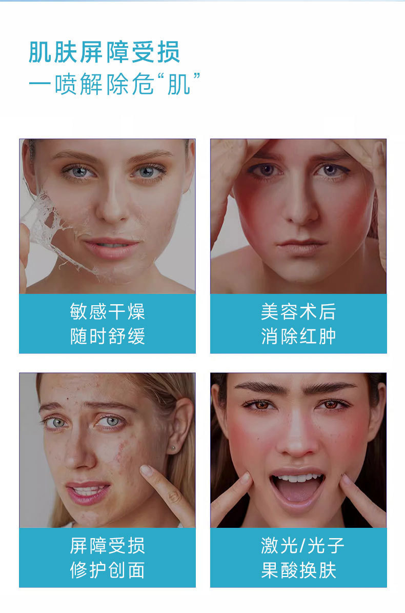 Медицинский спрей для устранения покраснений, спрей для чувствительной кожи, снимает сухое зудение, покраснения, увлажняет, восстанавливает барьерный коллагеновый спрей