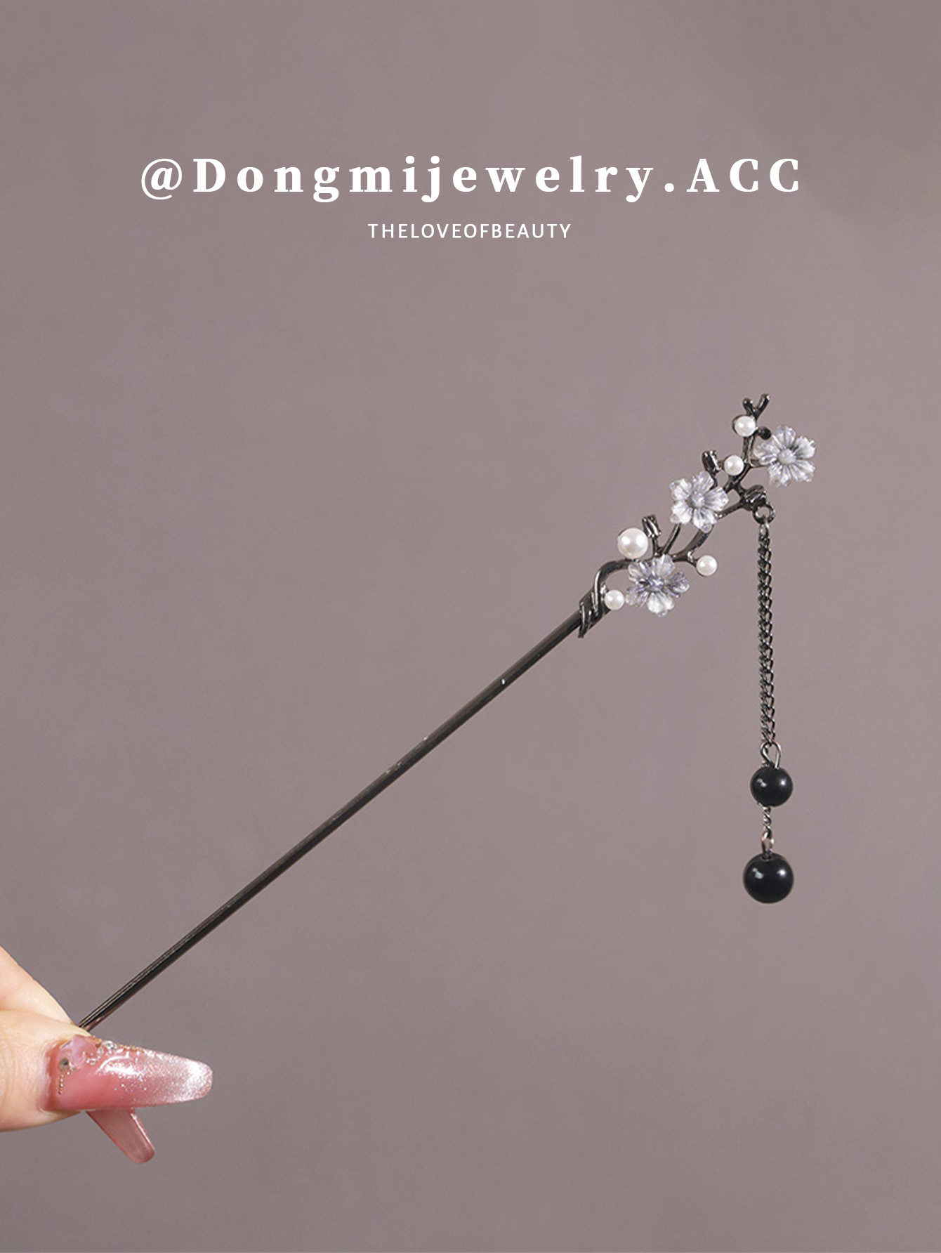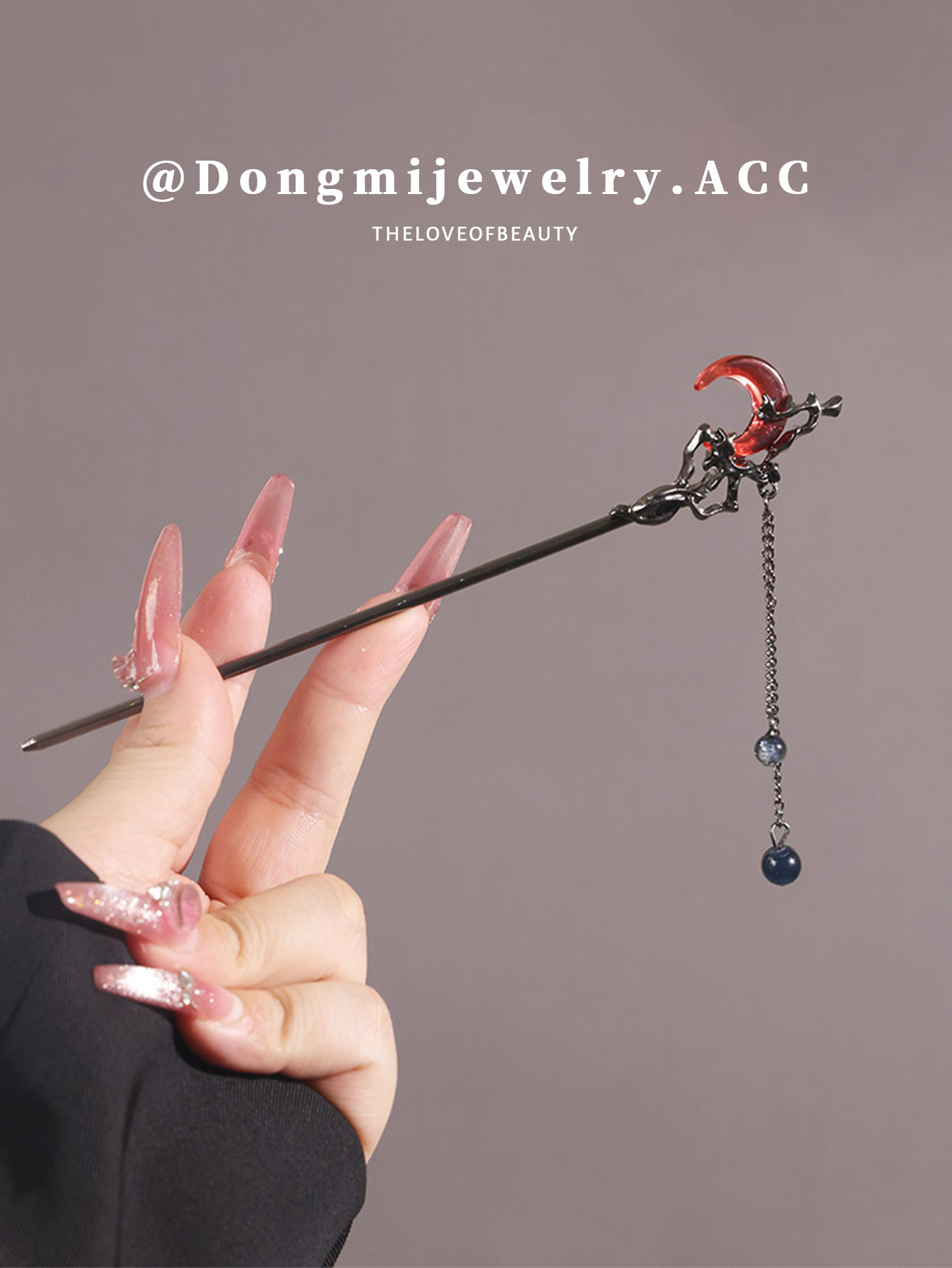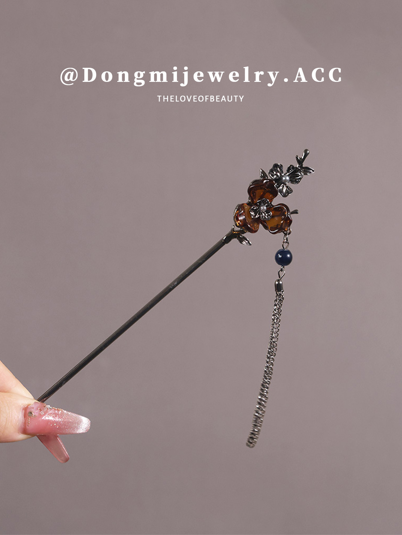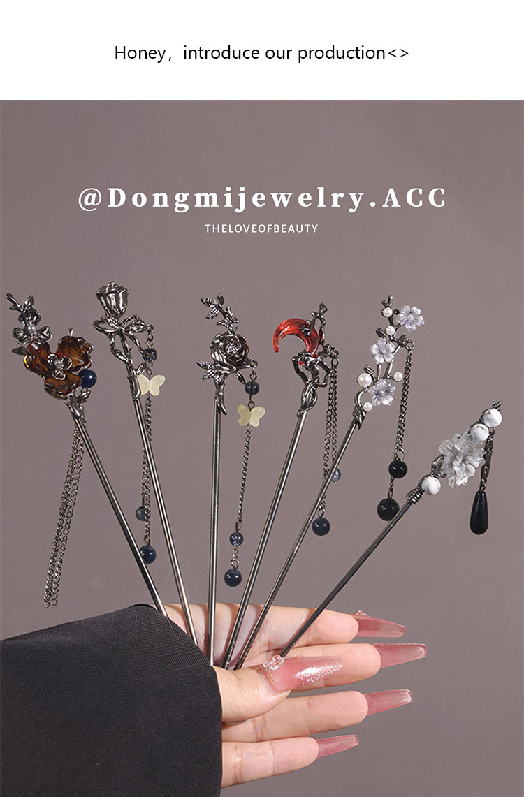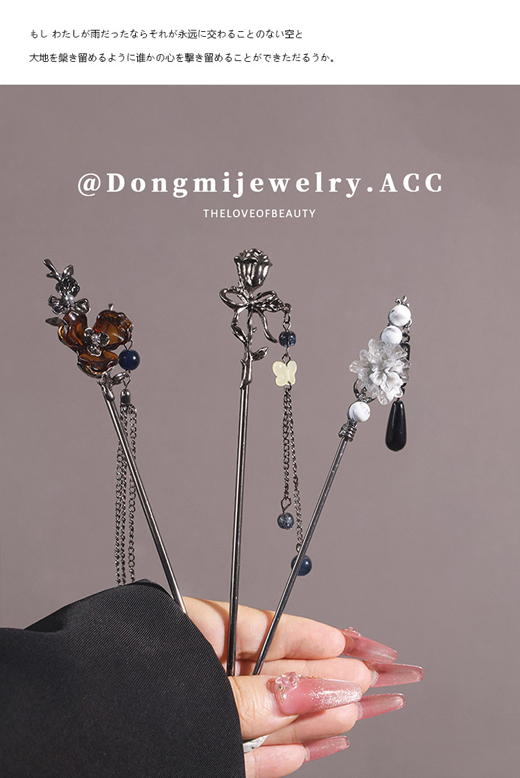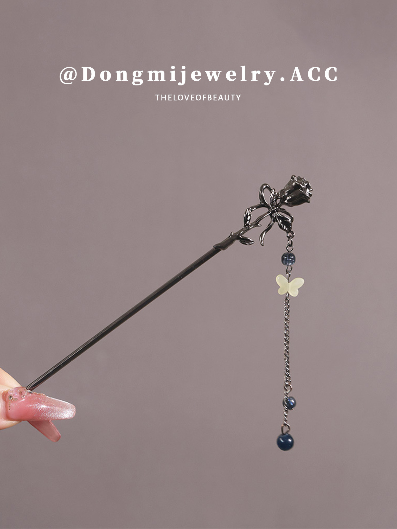 Заколка для волос с кисточкой Gun Black Red Moon; Шпилька с кисточкой в форме пистолета черного цвета; Заколка для волос с кисточкой в форме черной розы; Шпилька для волос с кисточкой Gun Black Clover; Шпилька с подвеской в виде цветка из чернил; Заколка для волос с кисточкой и тремя цветами