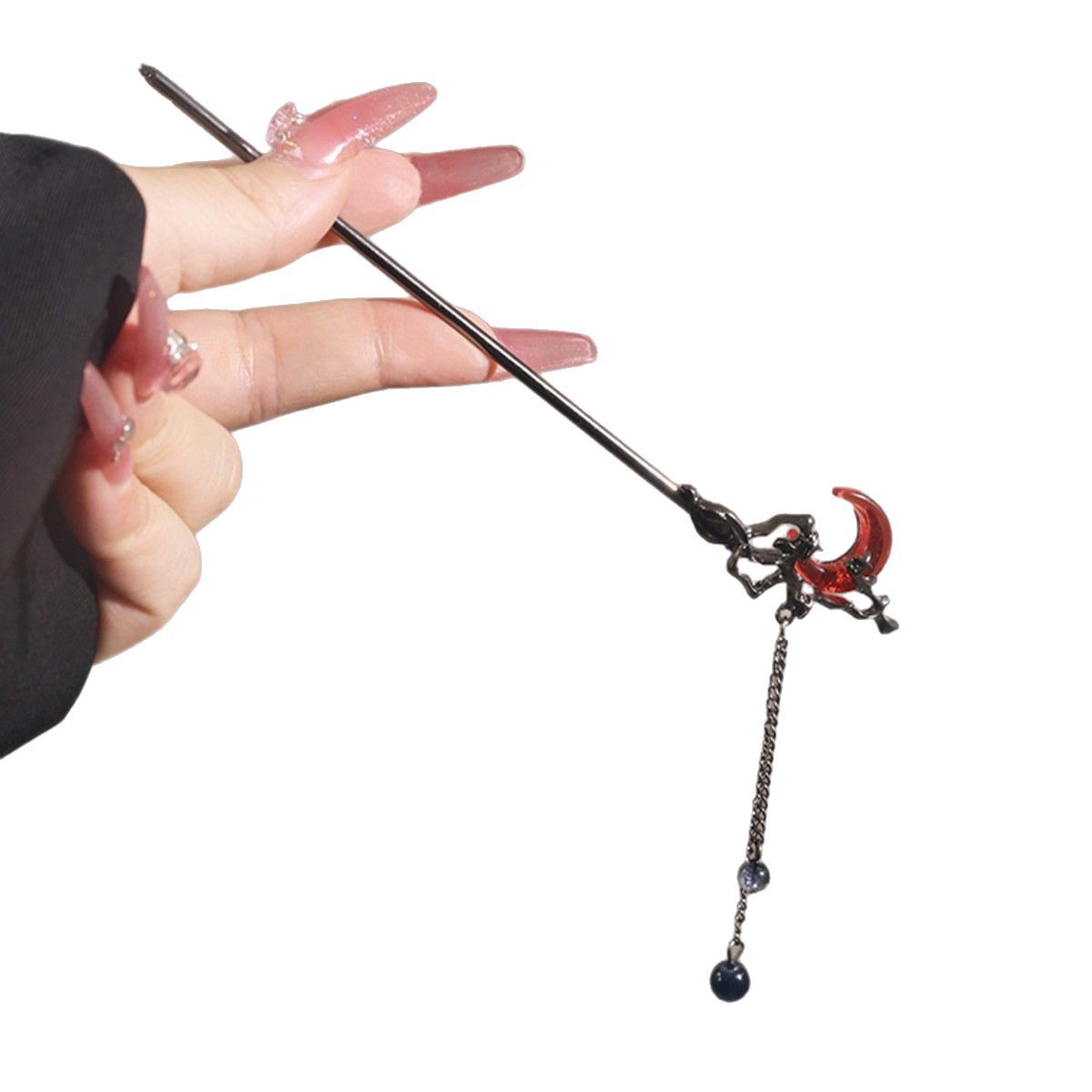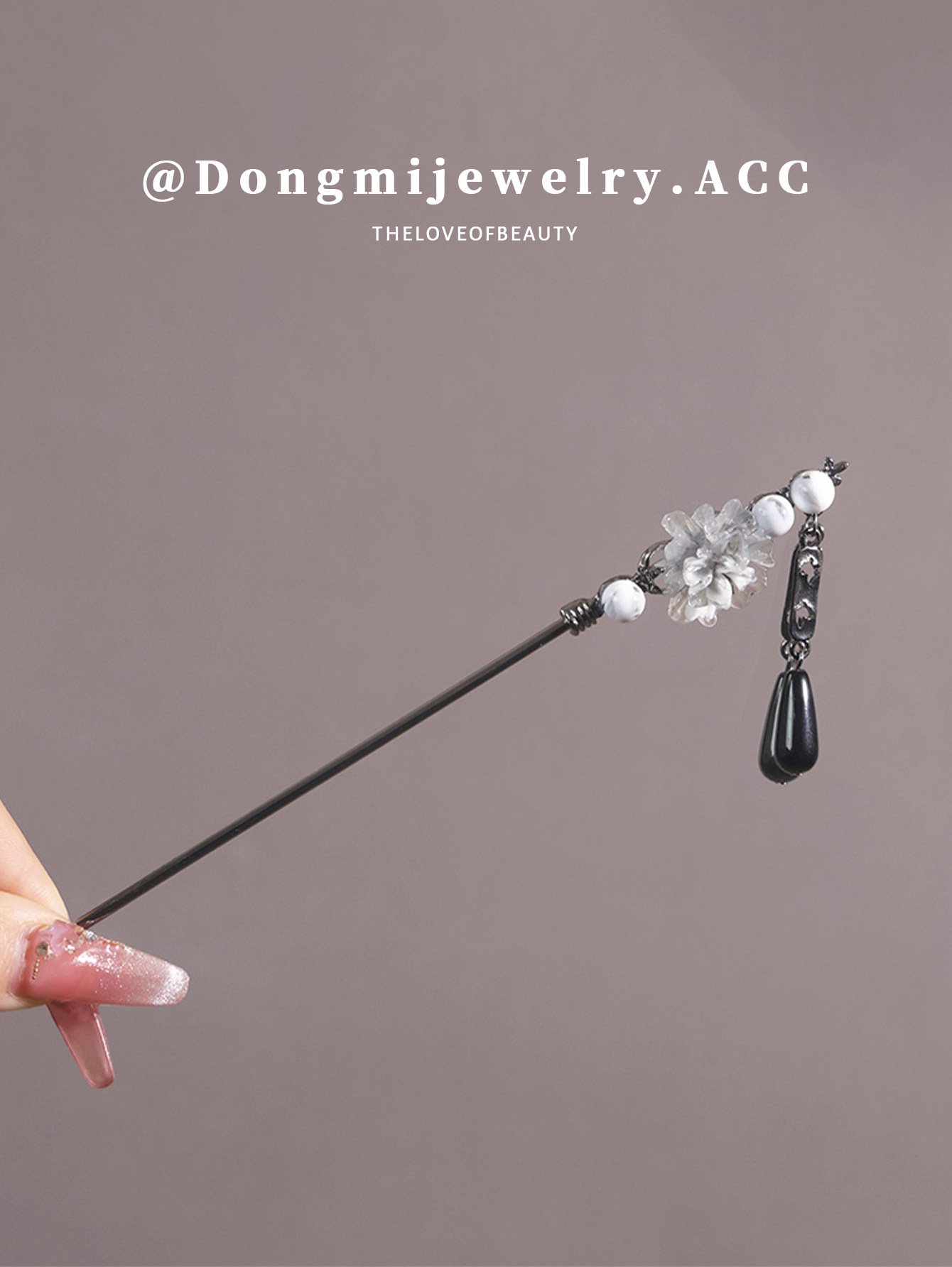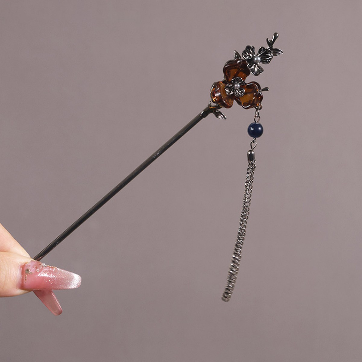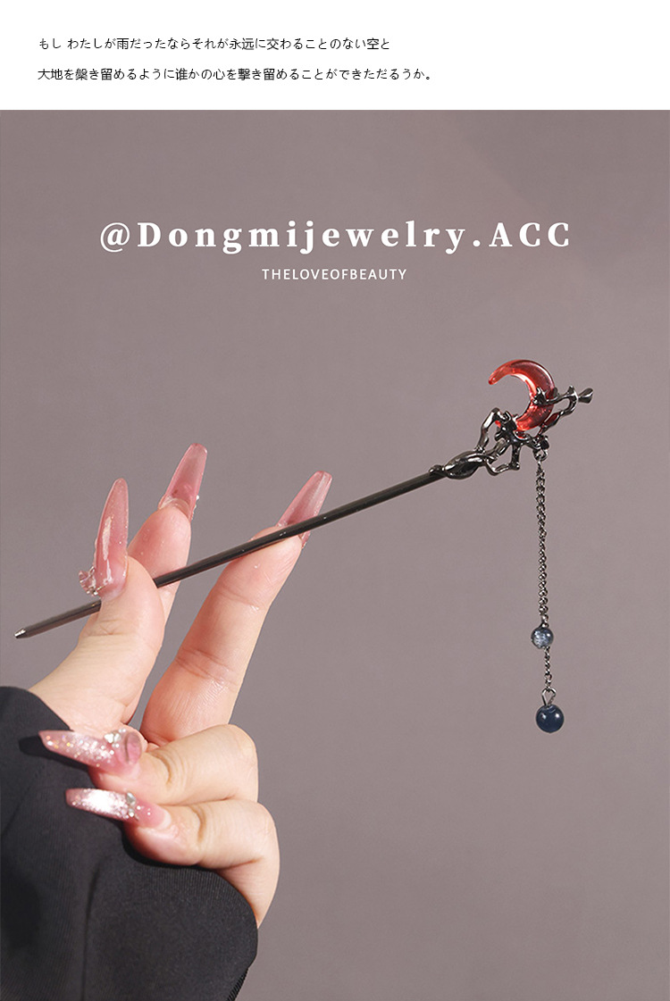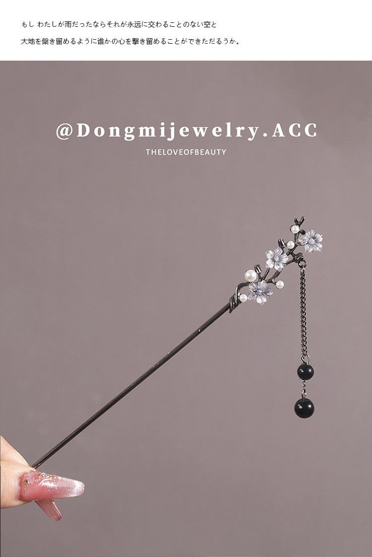 Заколка для волос с кисточкой Gun Black Red Moon; Шпилька с кисточкой в форме пистолета черного цвета; Заколка для волос с кисточкой в форме черной розы; Шпилька для волос с кисточкой Gun Black Clover; Шпилька с подвеской в виде цветка из чернил; Заколка для волос с кисточкой и тремя цветами