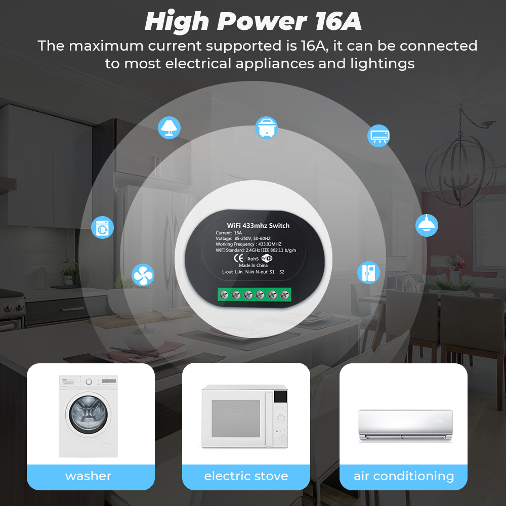 Выключатель Tuya WiFi+433 16A, умный выключатель с двойным управлением, таймером, беспроводной, скрытый, с голосовым управлением, модифицированные детали