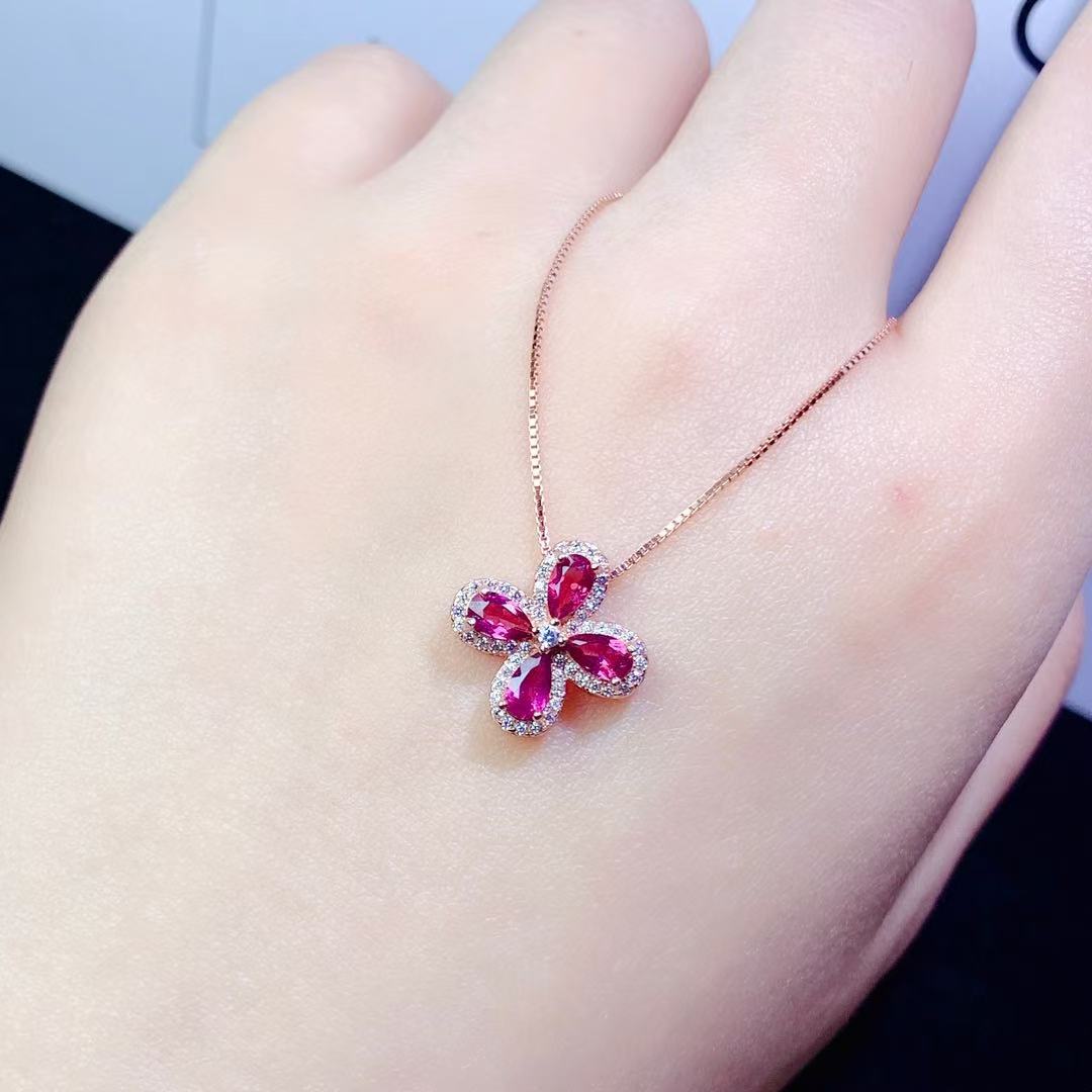 Подвеска из натурального магниевого алюминиевого граната, серебро 925 пробы, инкрустированное каплями воды, четырехлистный клевер, простые модные лепестки, нишевый цвет, сокровище