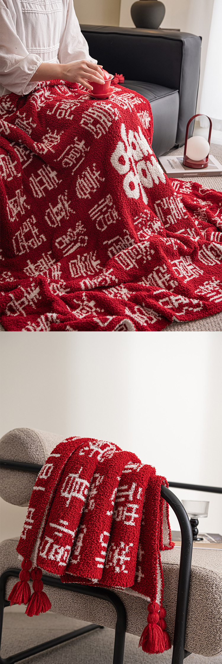 Элитное плед-одеяло Baxi для жениха и невесты, китайский свадебный подарок в коробке, красное вязаное одеяло