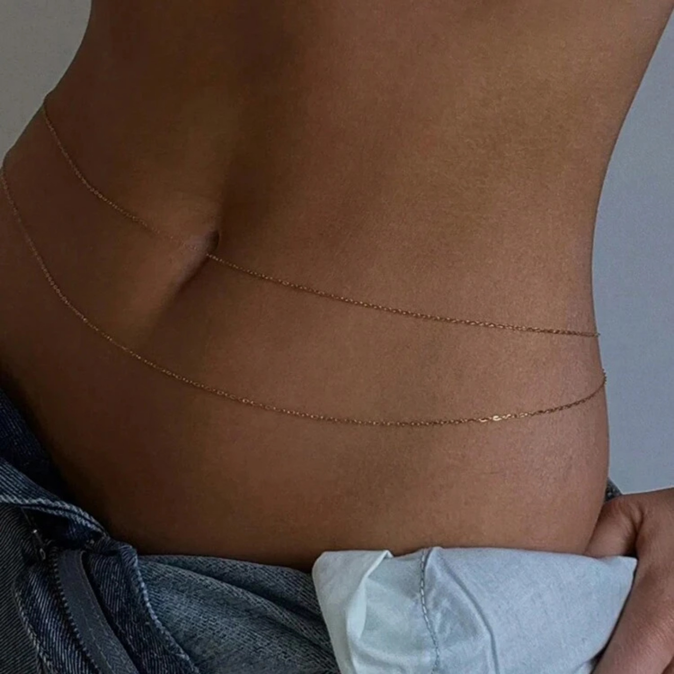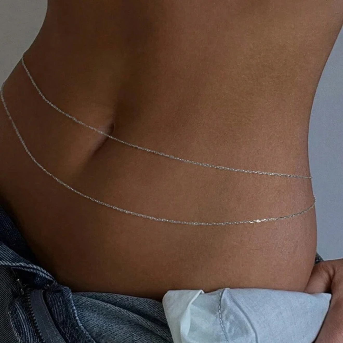 Золотая двухслойная поясная цепочка; Серебряная двухслойная поясная цепочка