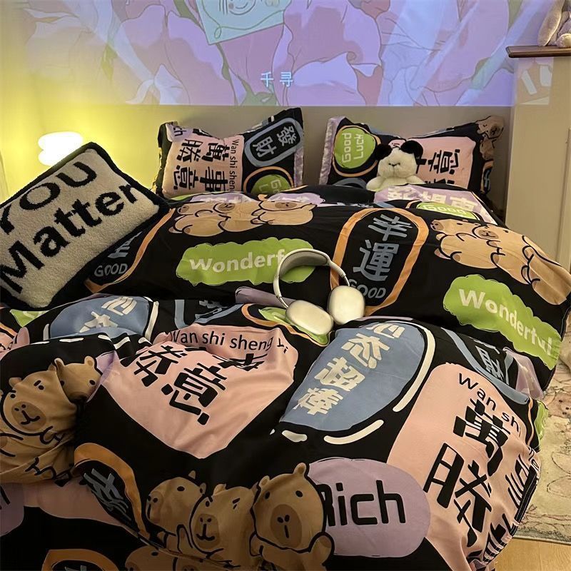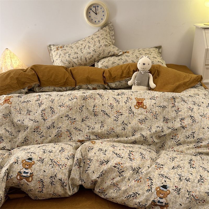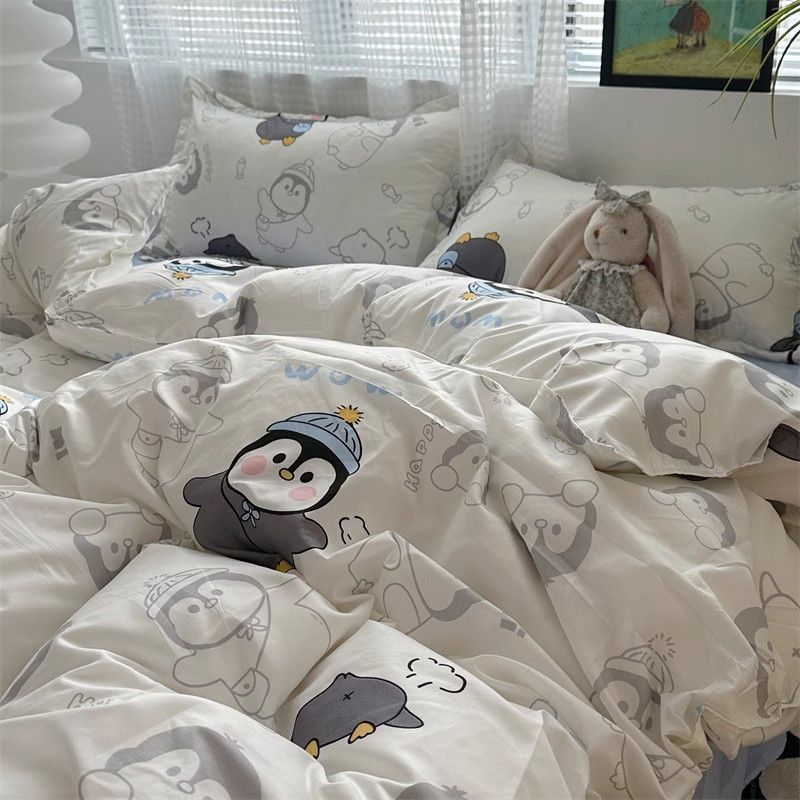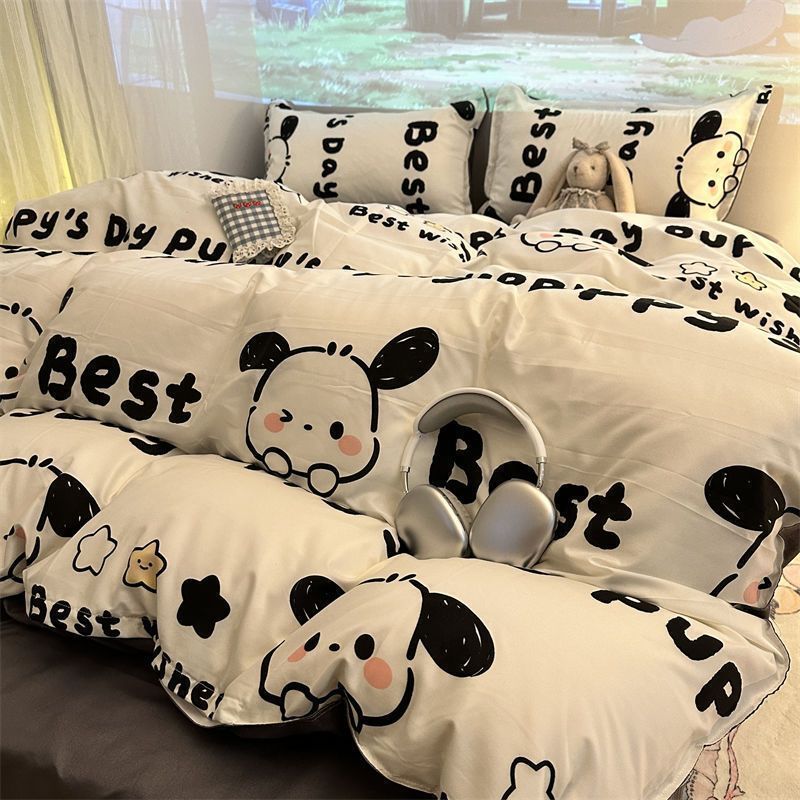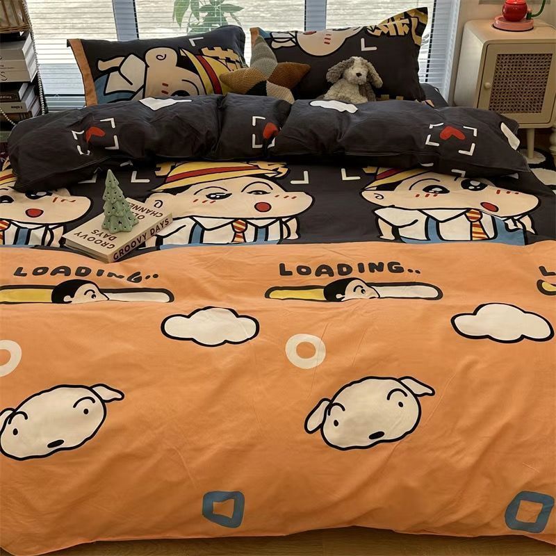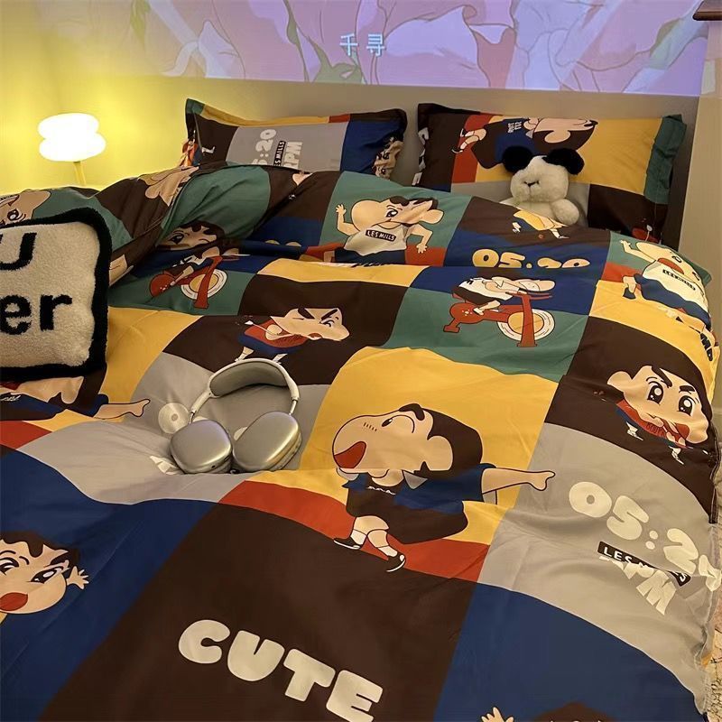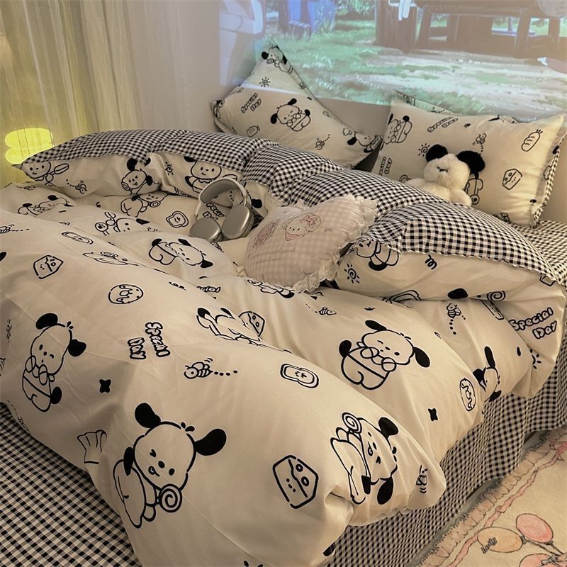 Черная клетчатая простая стираная хлопчатобумажная простыня, пододеяльник, комплект из четырех предметов, красивый и грязеотталкивающий студенческий общежитие, одиночный комплект из трех предметов
