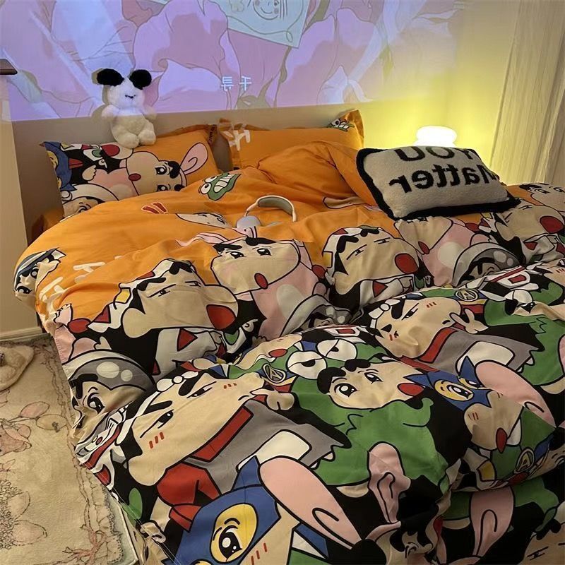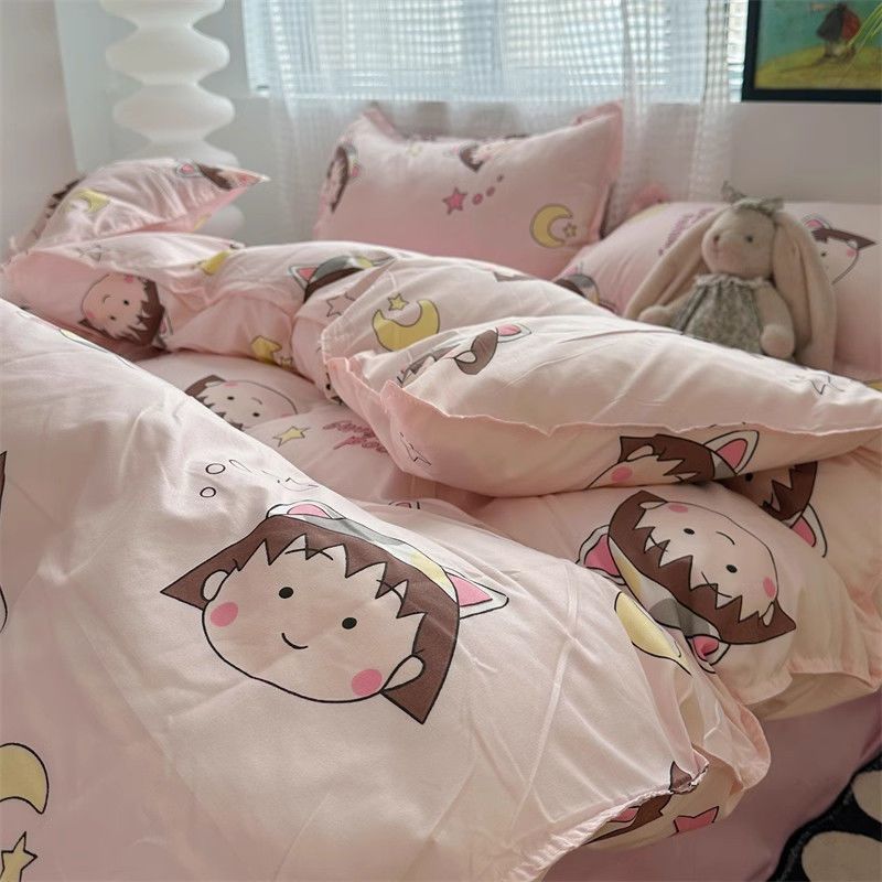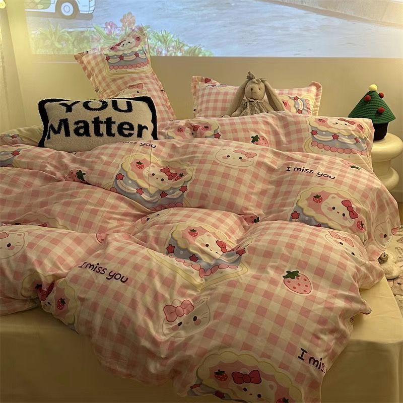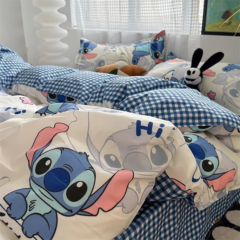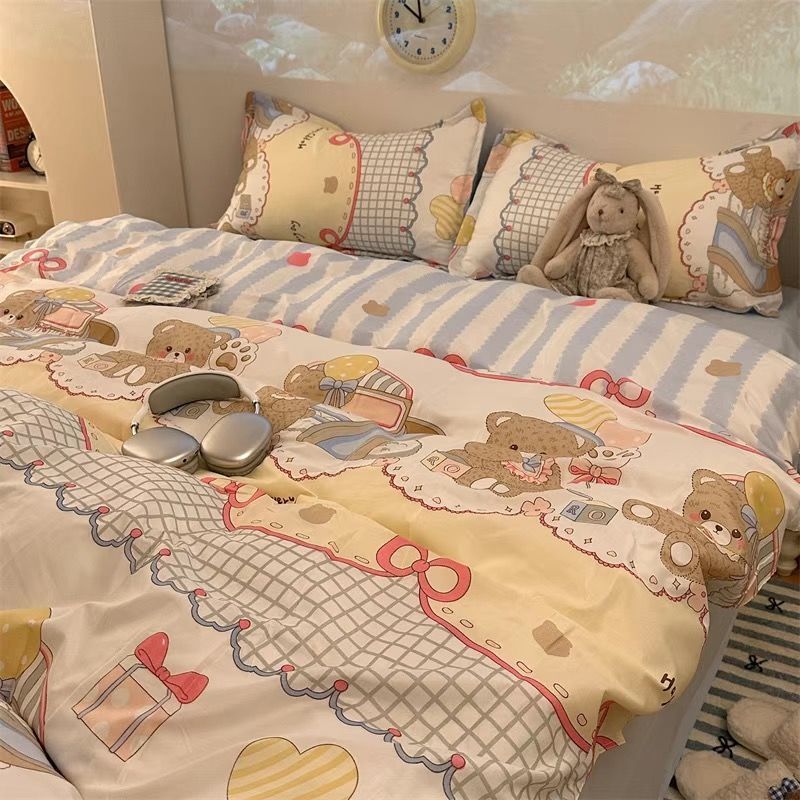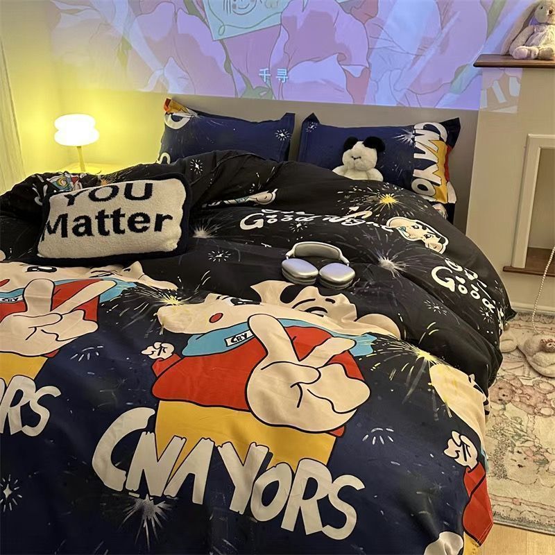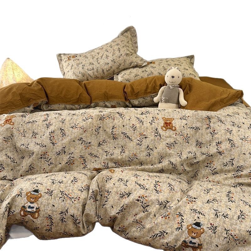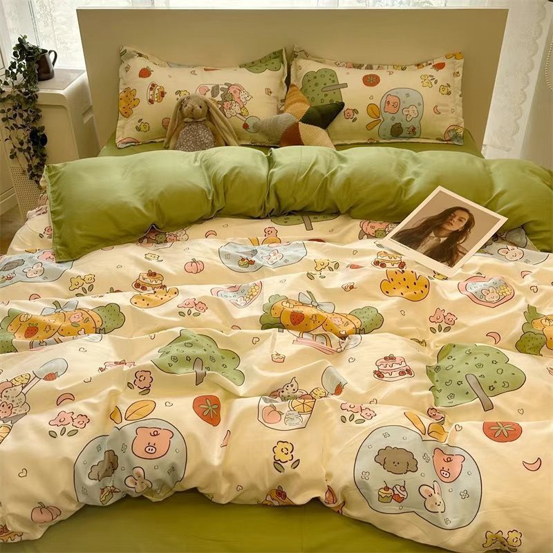 Черная клетчатая простая стираная хлопчатобумажная простыня, пододеяльник, комплект из четырех предметов, красивый и грязеотталкивающий студенческий общежитие, одиночный комплект из трех предметов