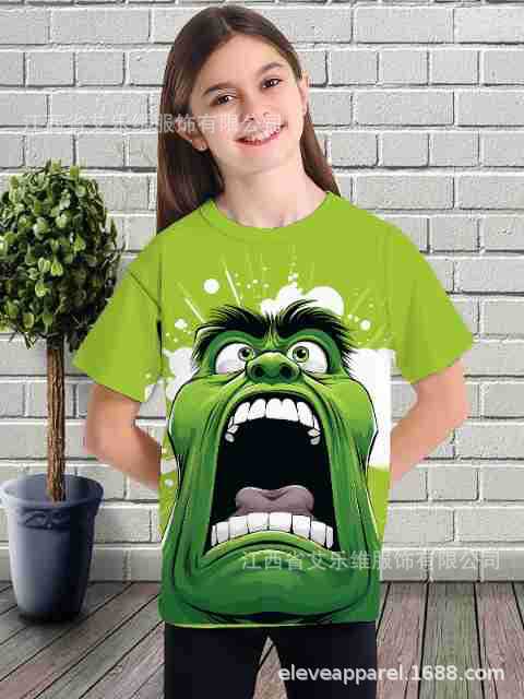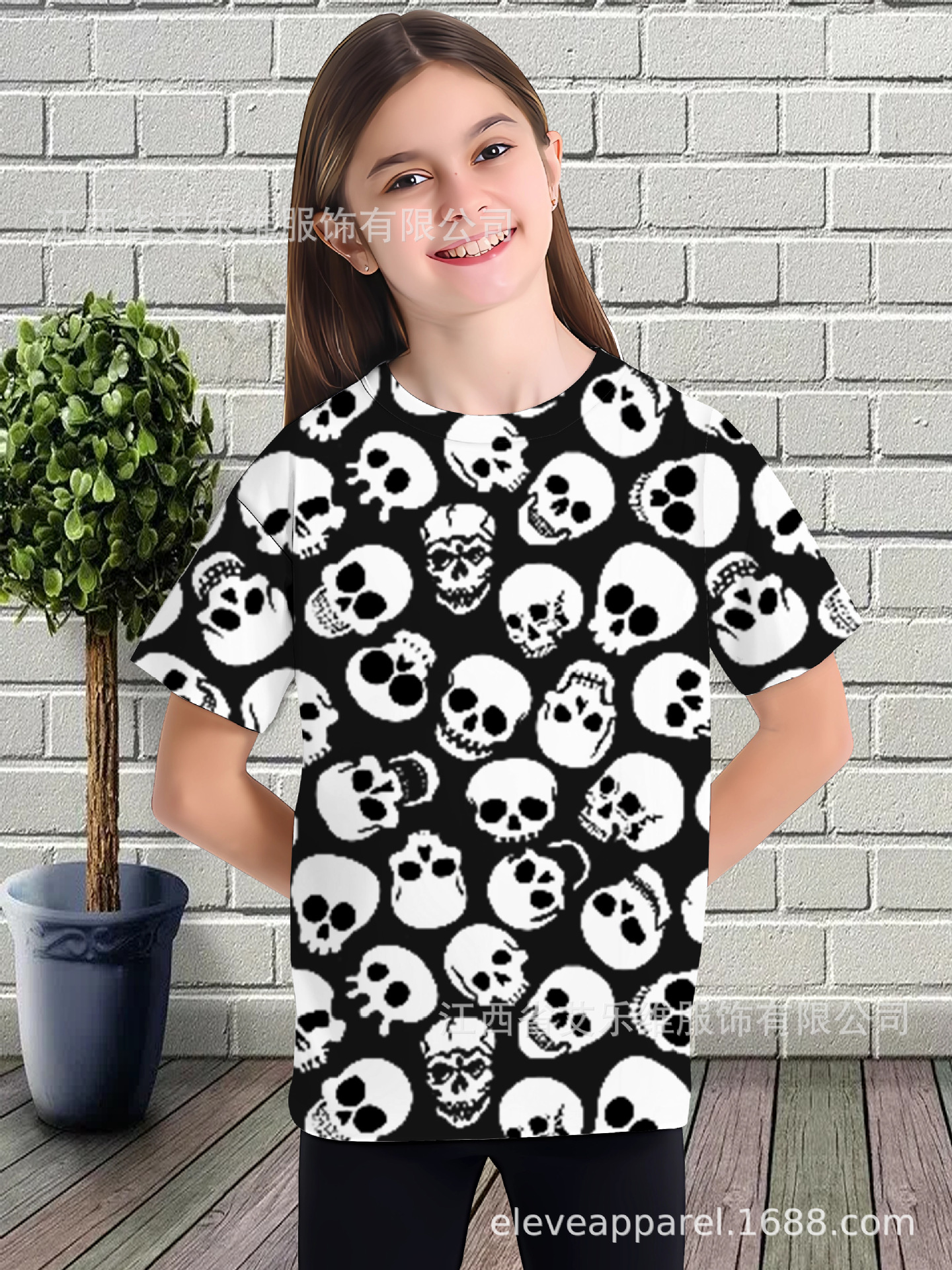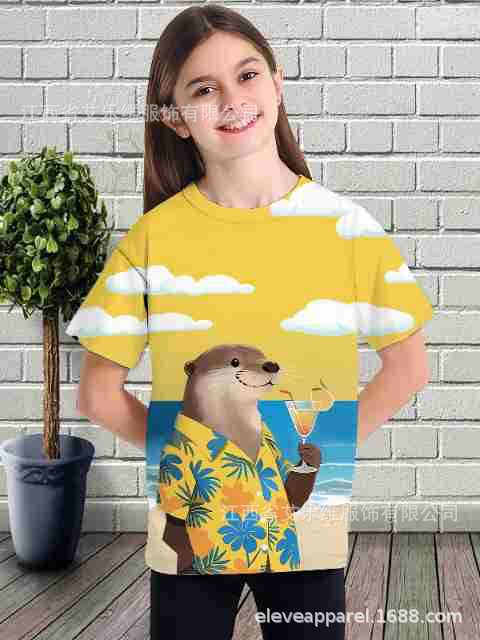 Футболка с круглым вырезом для девочек с 3D-цифровой печатью, с возможностью индивидуального дизайна, узоров и размеров, короткий рукав для трансграничной электронной торговли, хит продаж по всему миру.