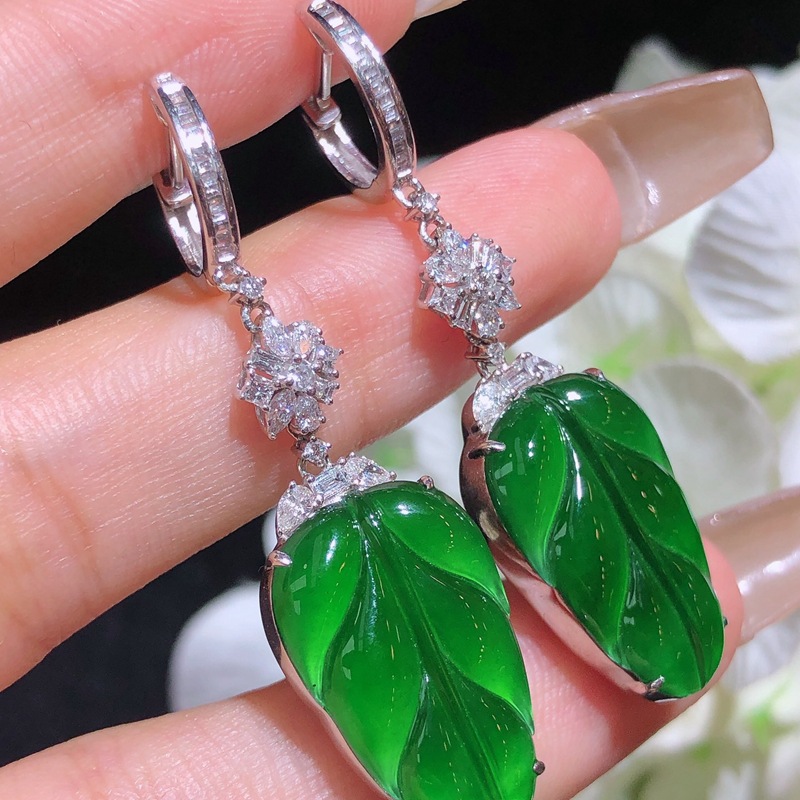 Полные зеленые листья изумрудные серьги, натуральные изумрудные украшения, серьги ювелирные украшения с сертификатом 18K золотая инкрустация