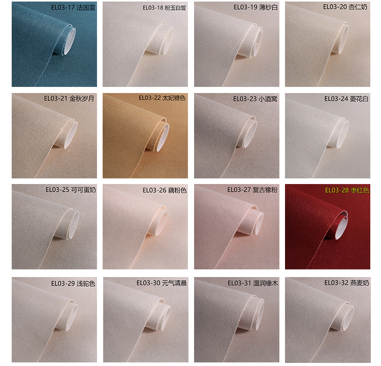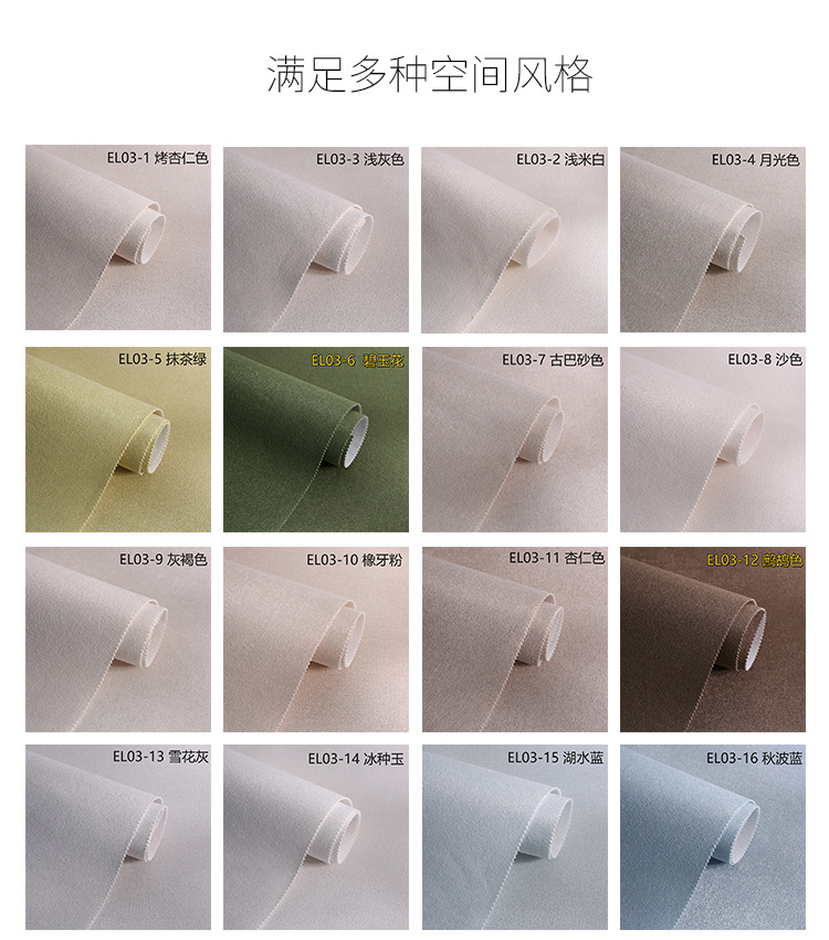 EL03-1 цвета поджаренного миндаля; EL03-2 светло-белый; EL03-3 светло-серый; EL03-4 цвет лунного света; EL03-5 Матча Зеленый; EL03-6 Цветок яшмы; EL03-7 Кубинский песочный цвет; EL03-8 песочный цвет; EL03-9 темно-серый; EL03-10 порошок для резиновых зубов; EL03-11 миндальный цвет; EL03-12 цвет перепела; EL03-13 Серая снежинка; EL03- 14 Ледяной нефрит; EL03-15 голубое озеро; EL03-16 Осенний синий; EL03-17 Французский синий; EL03-18 Ярмарка розового нефрита; EL03-19 тюль белый; EL03-20 Миндальное молоко; EL03-21 Золотые осенние годы; EL03-22 цвет ириски; EL03-23 Маленькая ямочка; EL03-24 бриллиант белый; EL03-25 Кофейный крем; EL03-26 корень лотоса розовый; EL03-27 винтажный резиновый порошок; EL03-28 бордовый красный; EL03-29 бежевый; EL03-30 Жизненный утренний; EL03-31 Теплый Дуб; EL03-32 Овсяное молоко; EL03-33 Ностальгический светло-коричневый; EL03-34 Кофе «Синяя гора»; EL03-35 кремово-белый; EL03-36 Фантомный серый; EL03-37 серый средний; EL03-38 Оолим; EL03-39 Вт серый; EL03-40 серебристый серый крыса; EL03-41 Мин Юэцзин; EL03-42 мягкий серый; EL03-43 стальной серый; EL03-44 сияющий серый; EL03-45 Зеленый тропический лес; EL03-46 Эдельвейс белый
