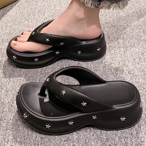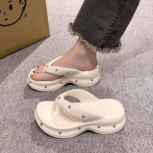 Шлепанцы на толстой подошве толщиной 5 см для женской летней верхней одежды, модная женская обувь, увеличивающая рост, женская пляжная обувь, новые противоскользящие тапочки 2024 года.