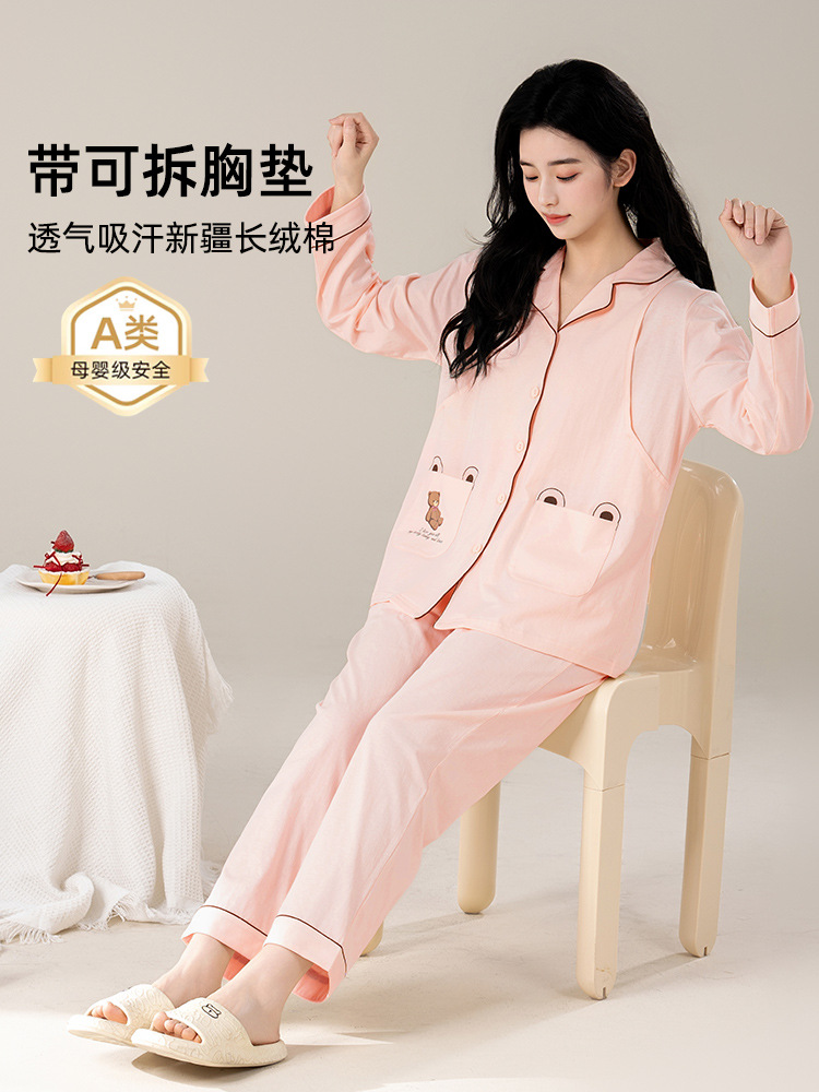 Новая хлопковая одежда класса А для послеродового периода, свободные хлопковые пижамы для кормления, женские пижамы с подушечками для груди, одежда для кормления после родов, костюм для беременных