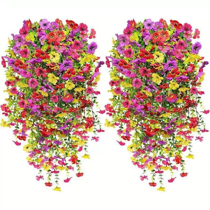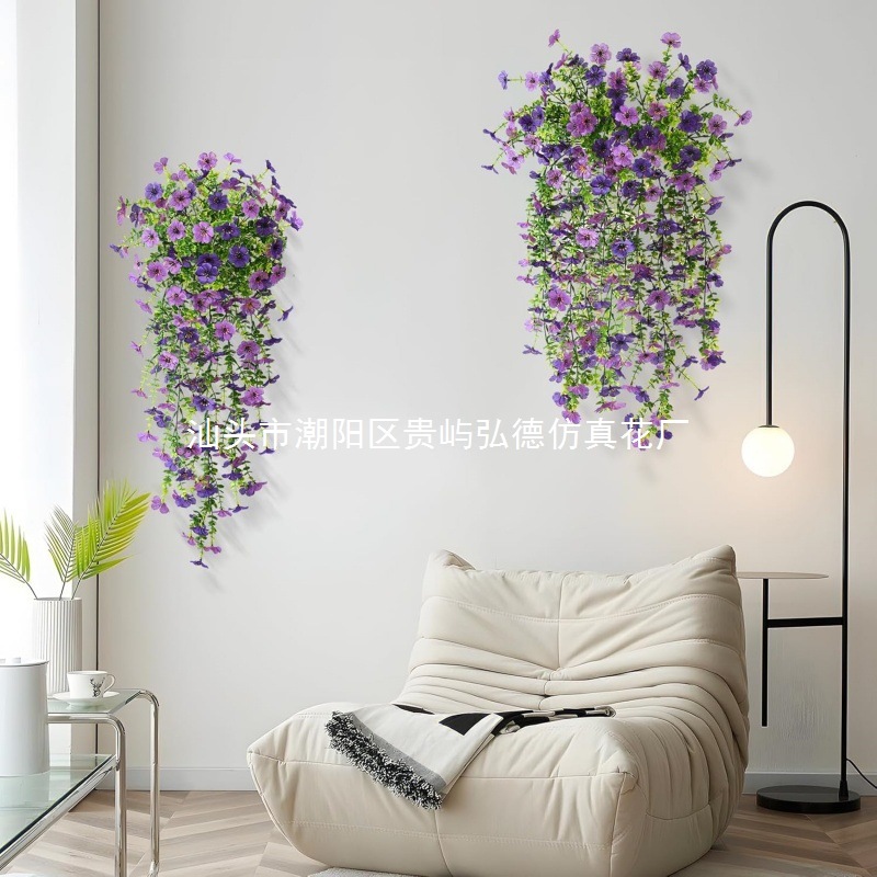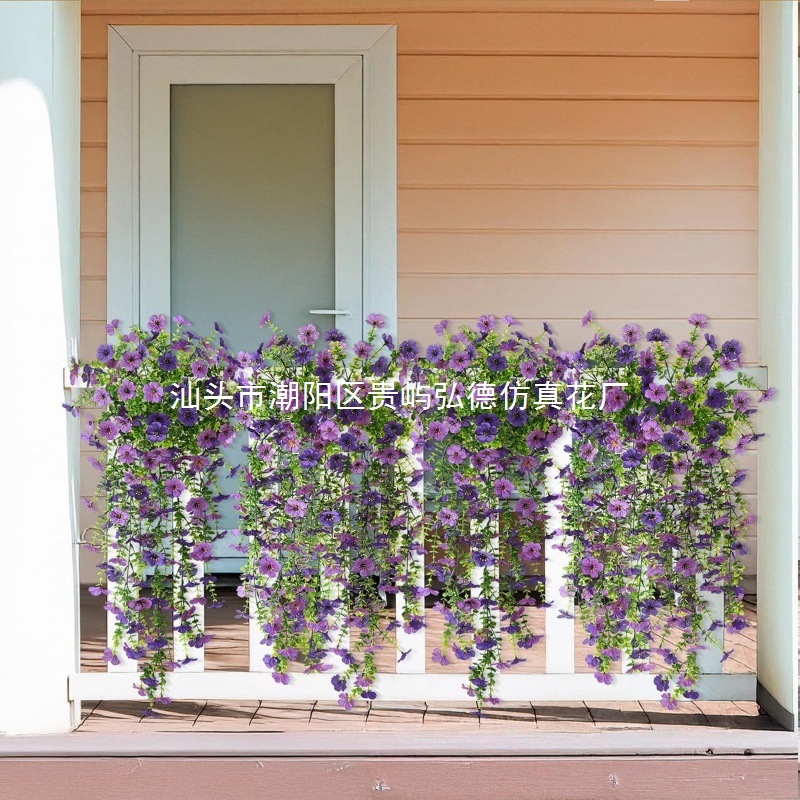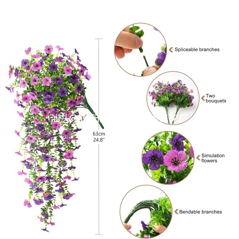 Искусственная гирлянда из эвкалипта и фиолетовых цветов для декора на весну, для улицы, дома, сада, ландшафтного дизайна, настенная цветочная гирлянда