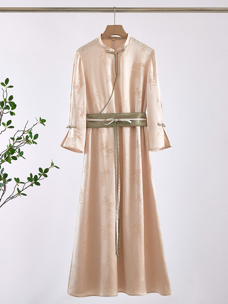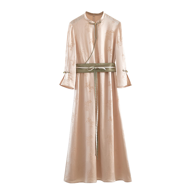 Qing Shuzhai новый китайский стиль улучшенное платье с воротником cheongsam новое летнее ретро жаккардовый темперамент длинное платье 2025 года