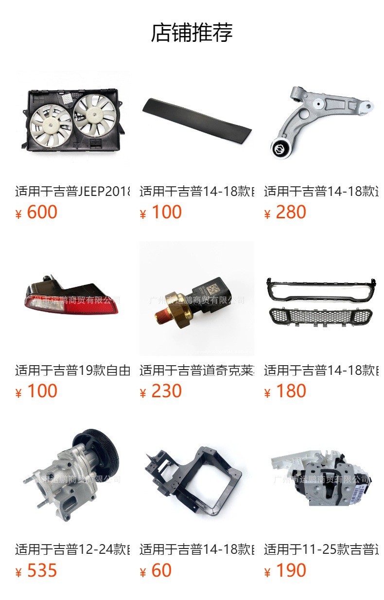 公司经营美国克莱斯勒,Jeep,道奇,广汽菲克 (牧马人,牧马人皮卡角斗士,指南者,自由客,自由光,大切诺基,指挥官,大指挥官,自由侠,自由人,300C,大捷龙,大捷龙凯领,漫步者,赛百灵,酷威,酷博 ,杜兰戈,赛百灵,挑战者 ,战马,RAM公羊皮卡霸王龙,复仇者。)全车配件,优质品牌件,纯正原厂件,一手货源,价格更优