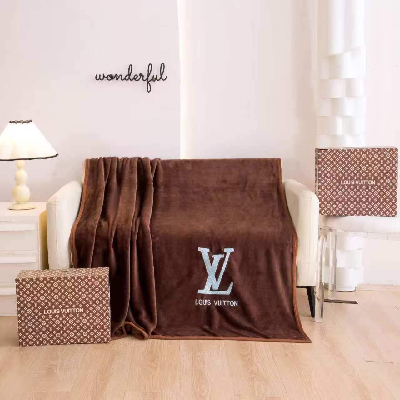 Плед для офиса с вышивкой из кораллового велюра, утолщенный, для обеденного перерыва, с кондиционером, в подарочной коробке, модный брендовый плед для внешней торговли.