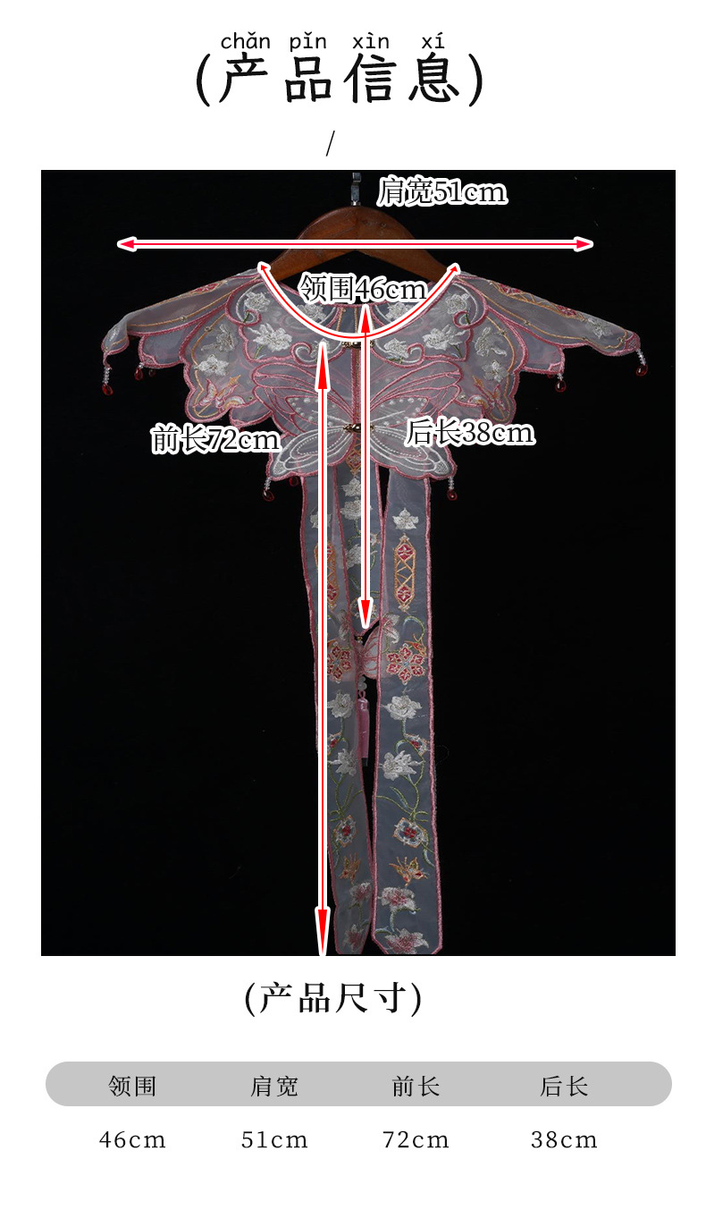 Новая модель цветная большая бабочка облачное плечо национальный ветер вышитая шаль поддельный воротник академическая одежда Аксессуары Hanfu лошадь юбка облачное плечо