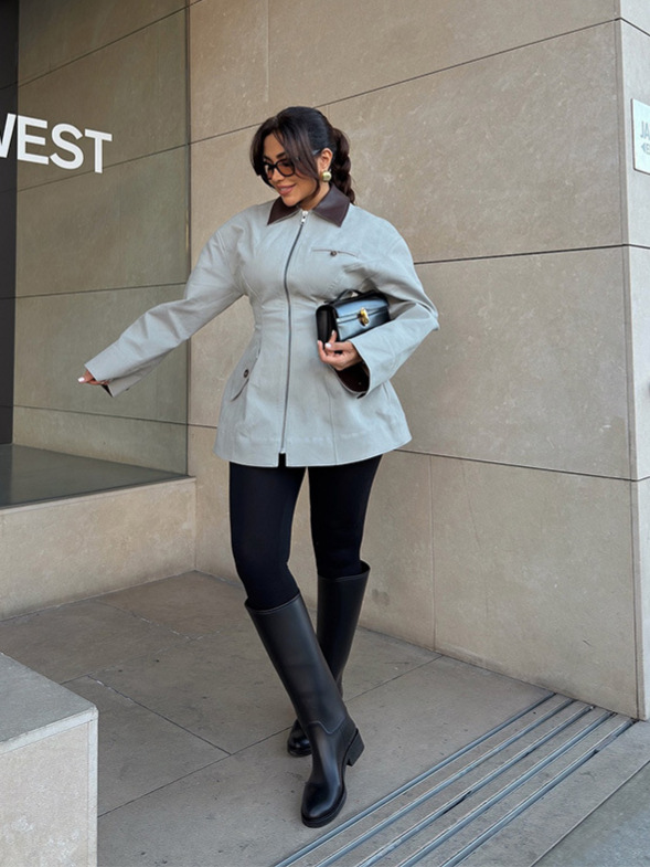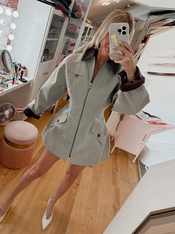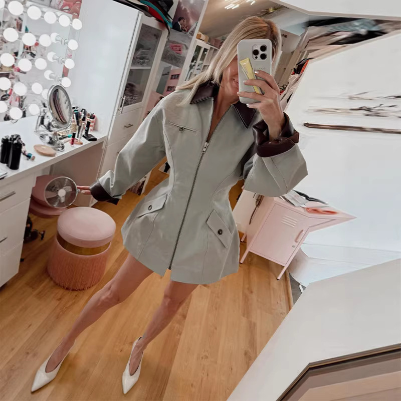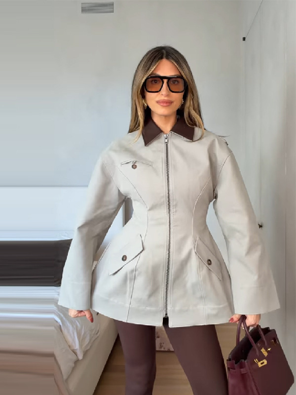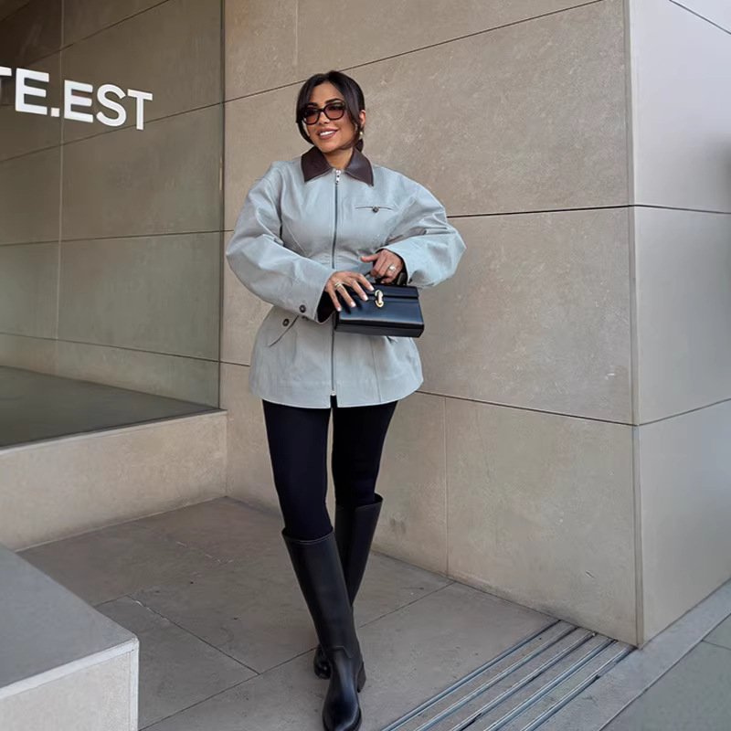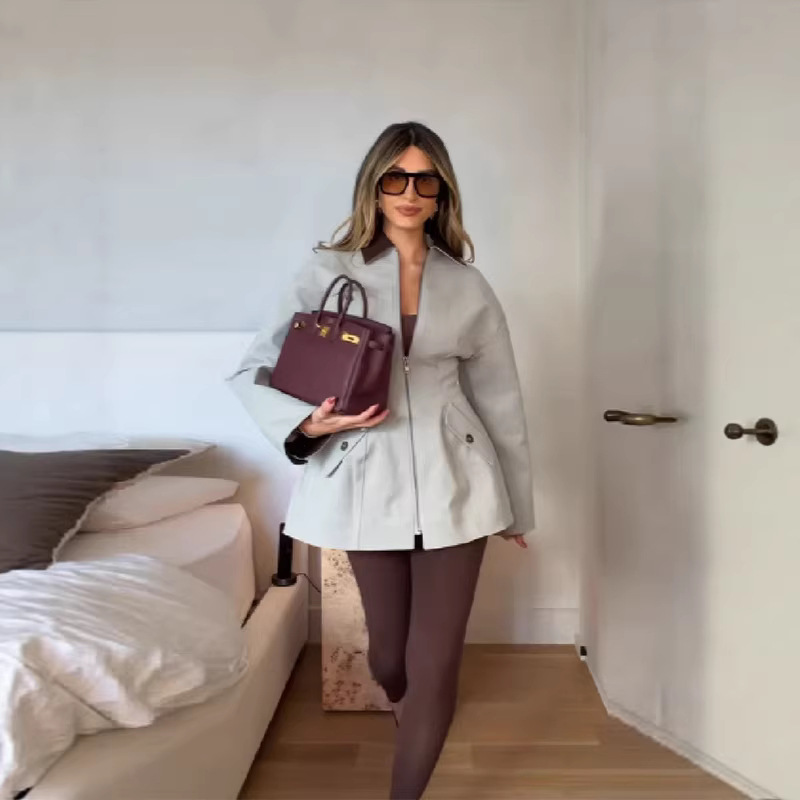 Модная и элегантная высококачественная укороченная куртка на молнии с отложным воротником и поясом для талии, новинка весны 2026 года, для трансграничной торговли на AliExpress
