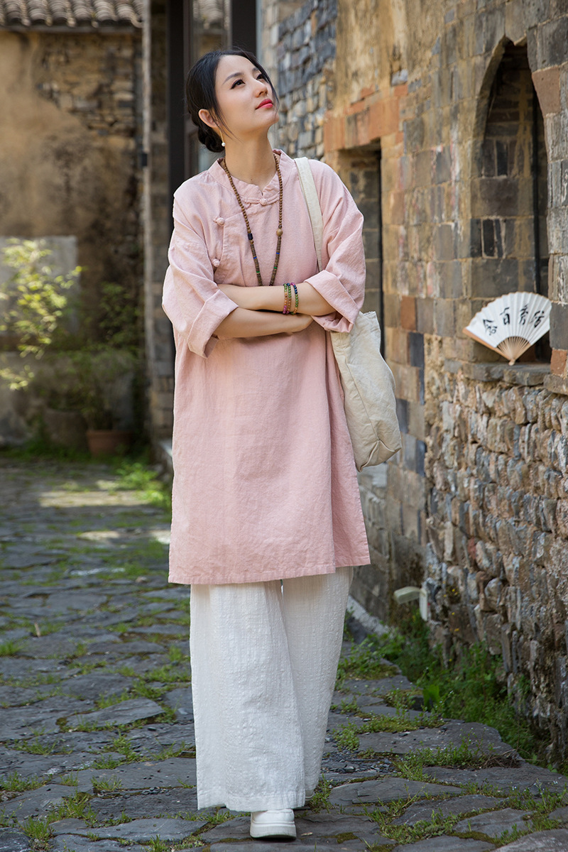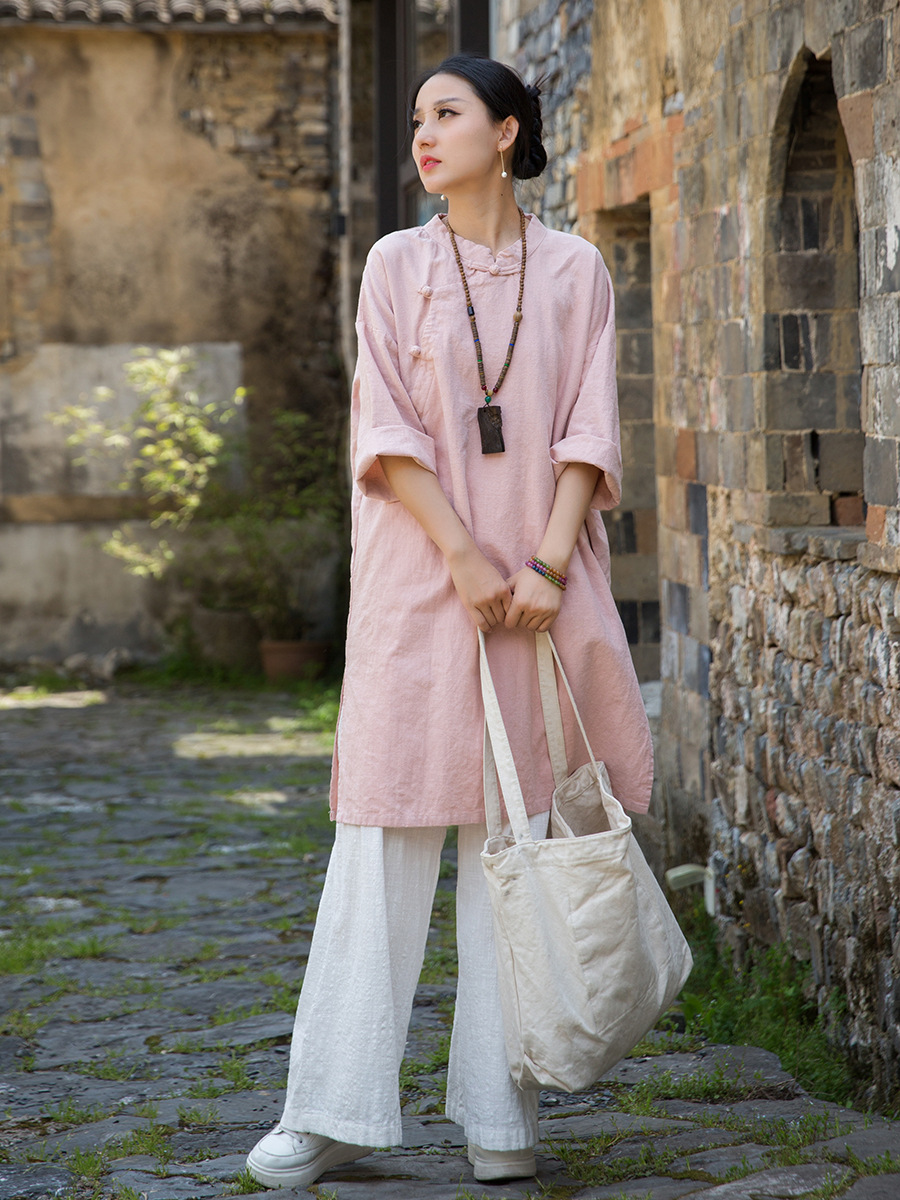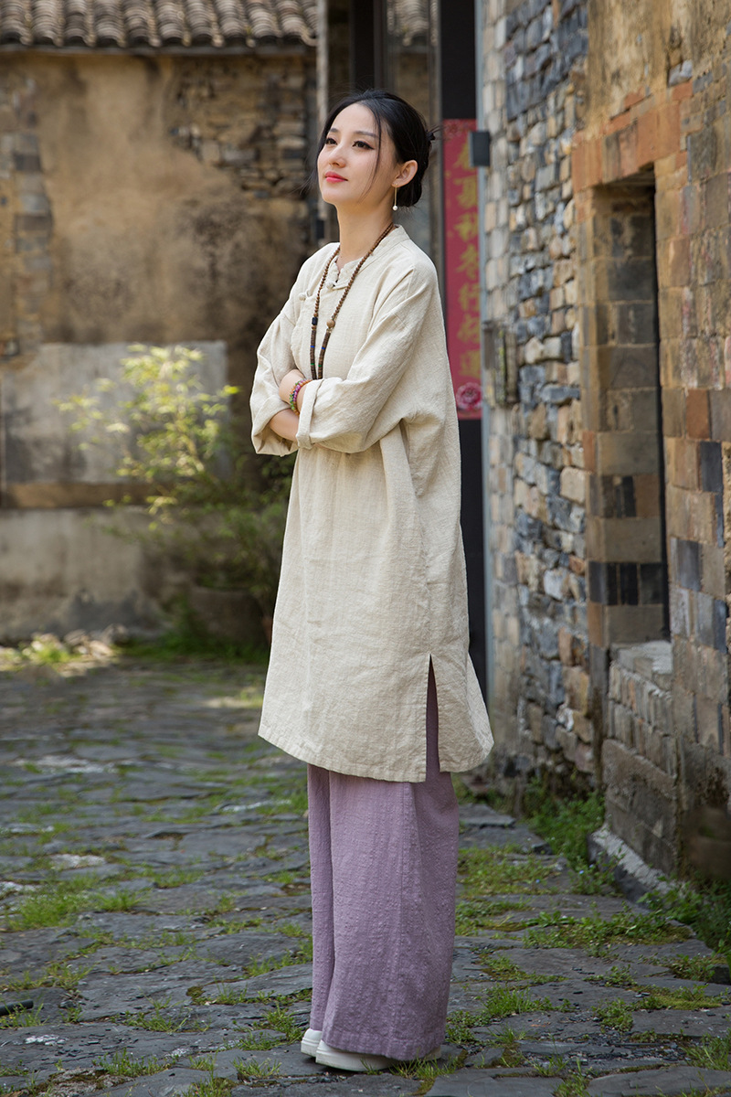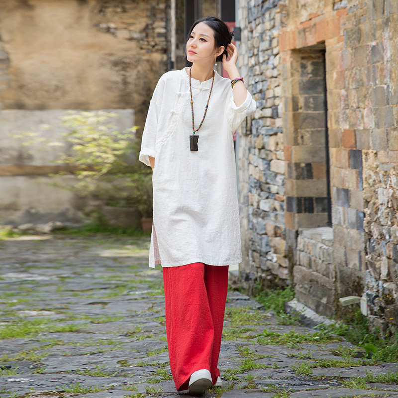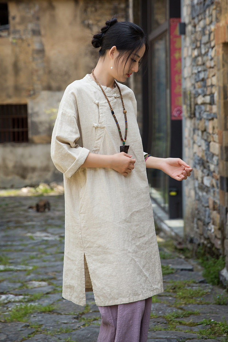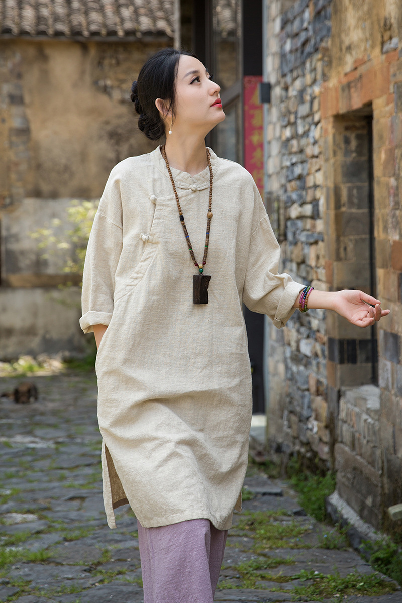 Осеннее платье из рами в китайском стиле «Дзен», персонализированный топ в стиле чхонсам, улучшенное молодежное китайское длинное платье для девочек