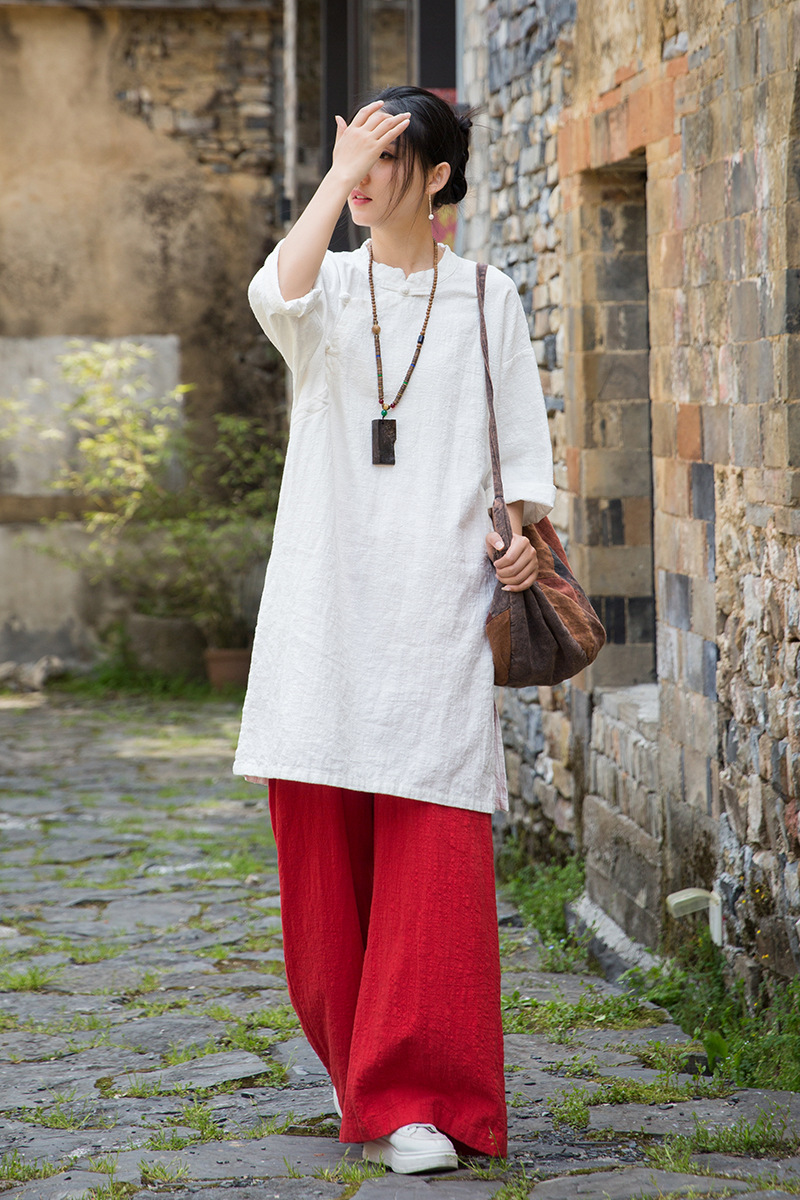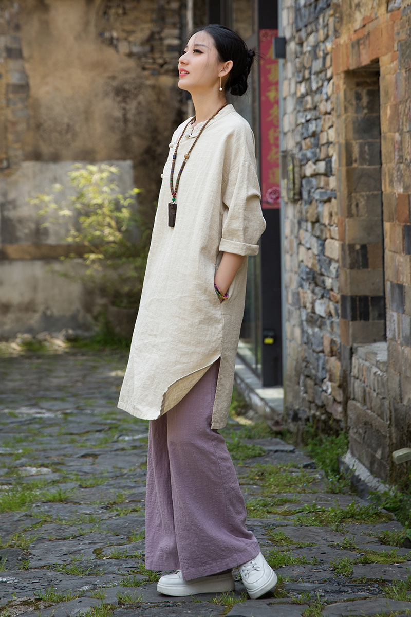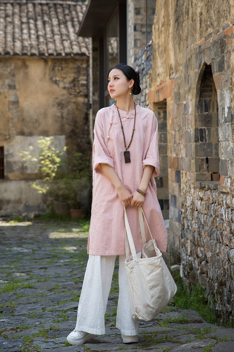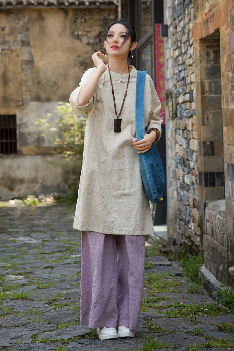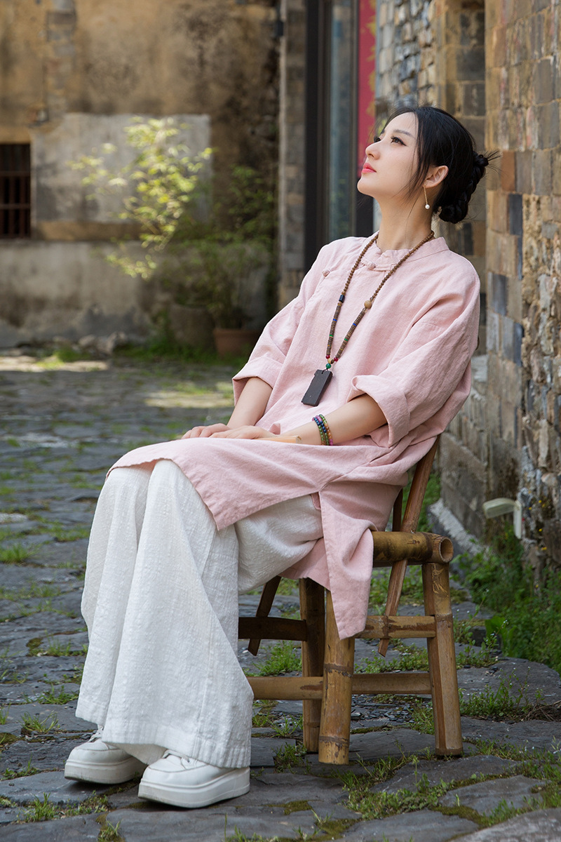Осеннее платье из рами в китайском стиле «Дзен», персонализированный топ в стиле чхонсам, улучшенное молодежное китайское длинное платье для девочек