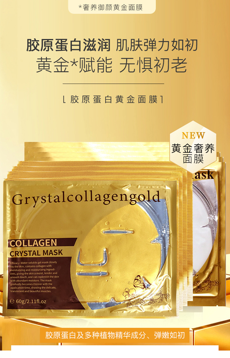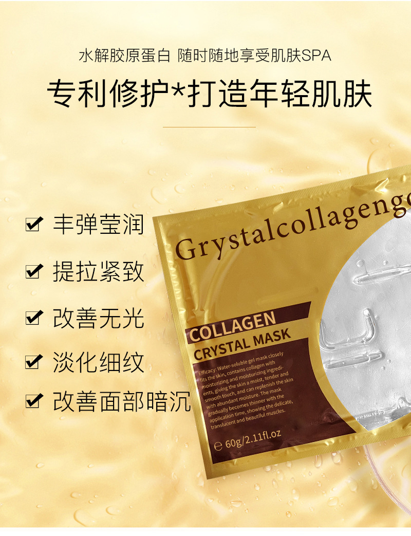 Специальная золотая маска с кристаллическим костным коллагеном для салона красоты для осветления, увлажнения и увлажнения желеобразной маски для укрепления