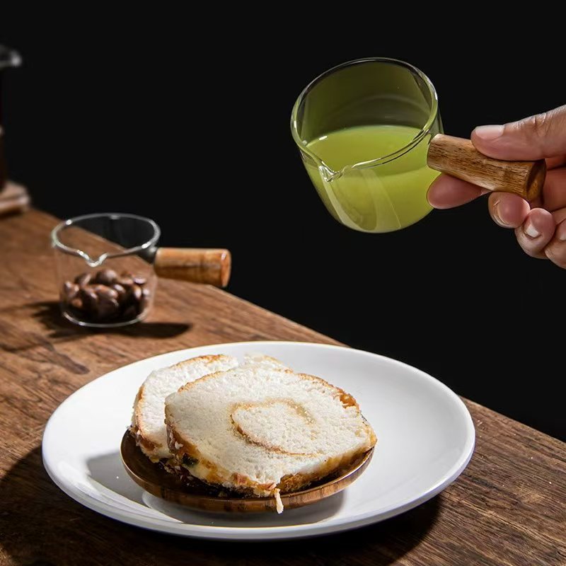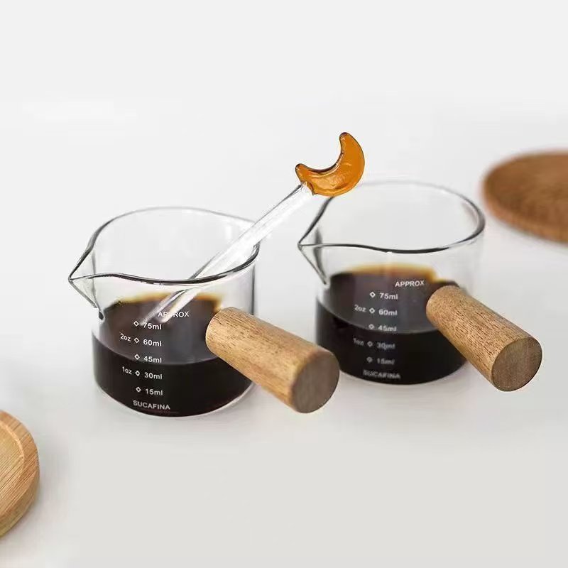 Чашка для молока с деревянной ручкой, кувшин для молока, маленькая чашка для молока, кувшин для молока, весы для эспрессо, мерный стакан, мерный стакан для приправ, сока, производитель