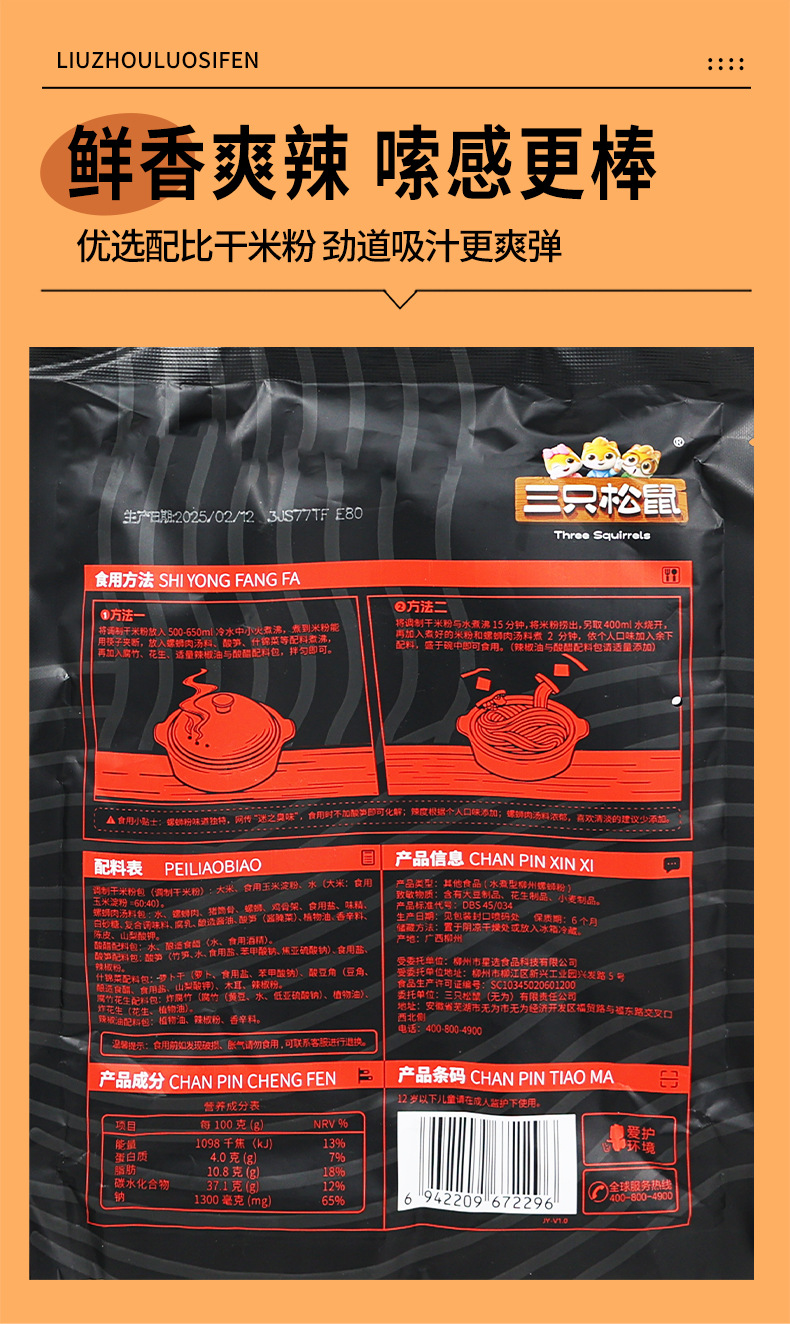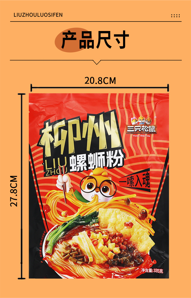 Лапша с улитками Liuzhou Three Squirrels, 335 г/пакет, аутентичная лапша Liuzhou со специальными улитками, удобная закуска для общежития, быстрое питание