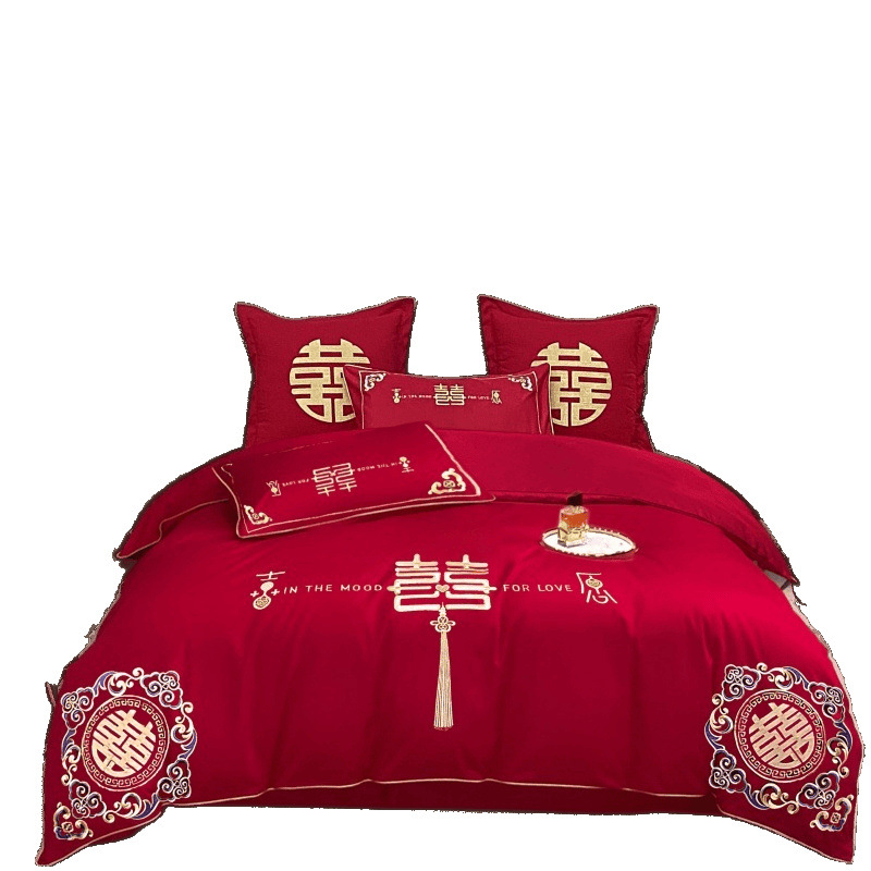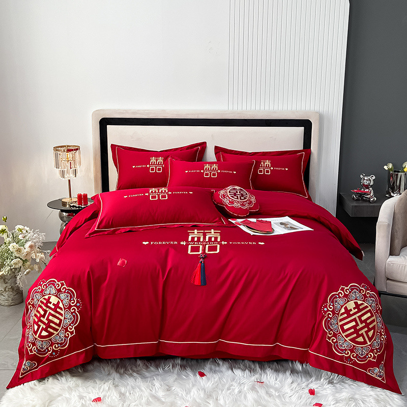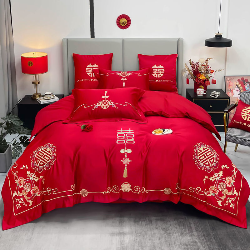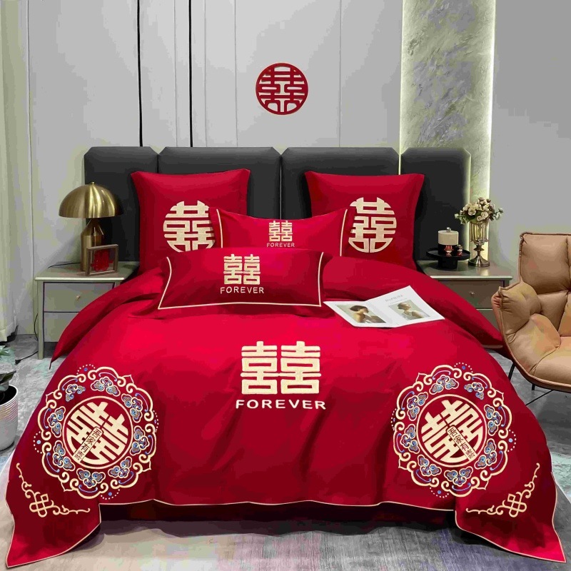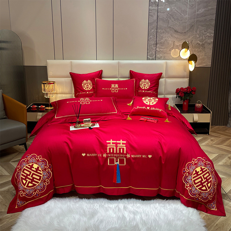 Новый свадебный комплект из четырех предметов, пододеяльник с вышивкой большого красного дракона и феникса, свадебное одеяло, комплект постельного белья для свадебной комнаты из шести предметов