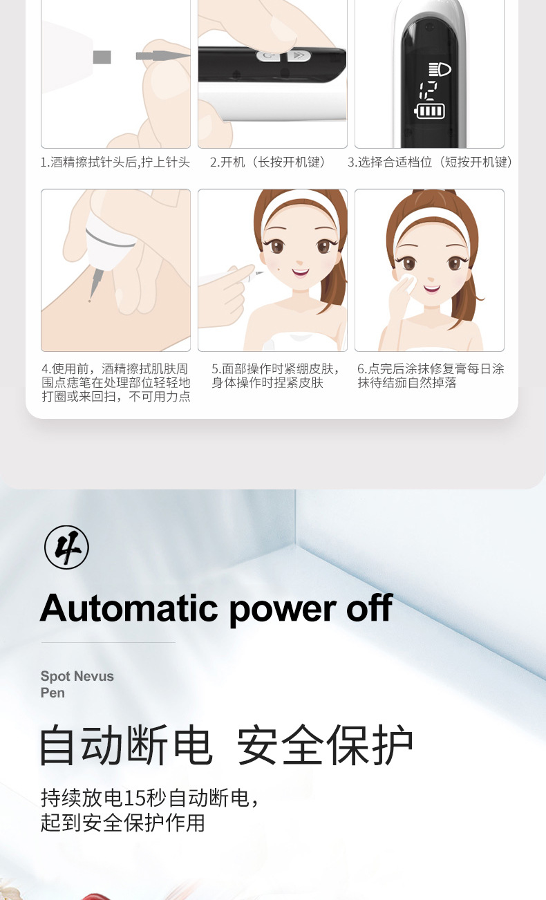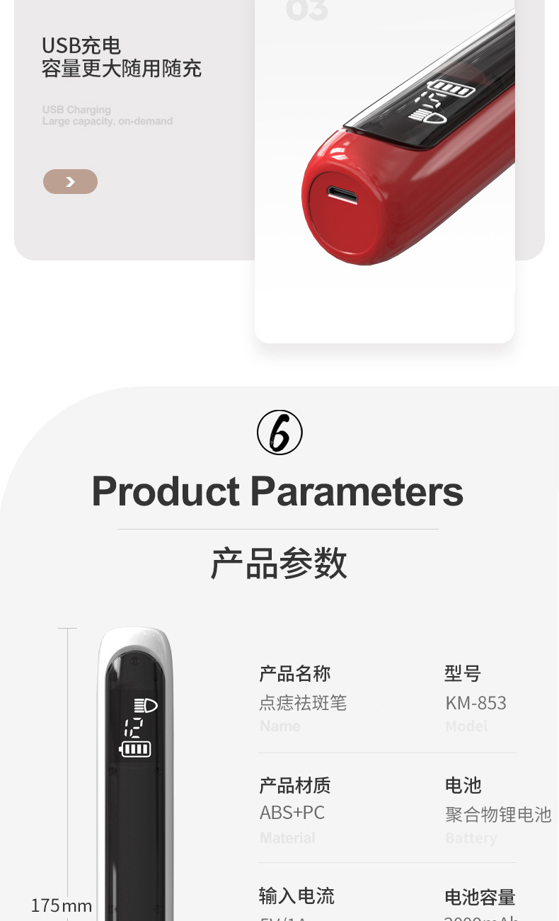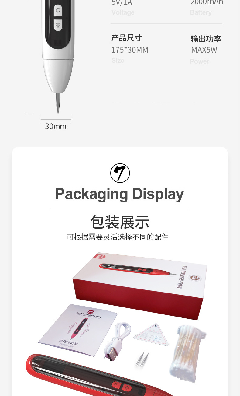 Маленькая белая моль ручка для удаления ионов карбонизации пятен для удаления родинок