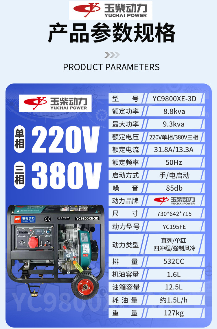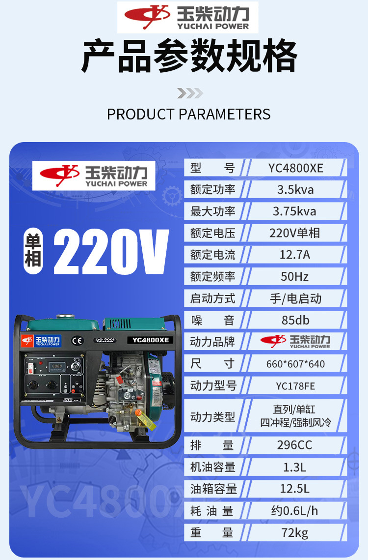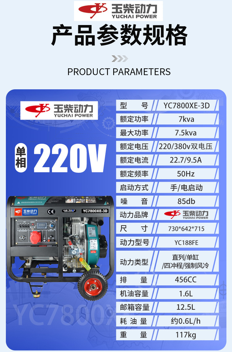 Yuchai небольшой дизель-генератор 3/5/8/10 кВт кВт для трансграничной внешней торговли производитель 220v380v для домашнего использования