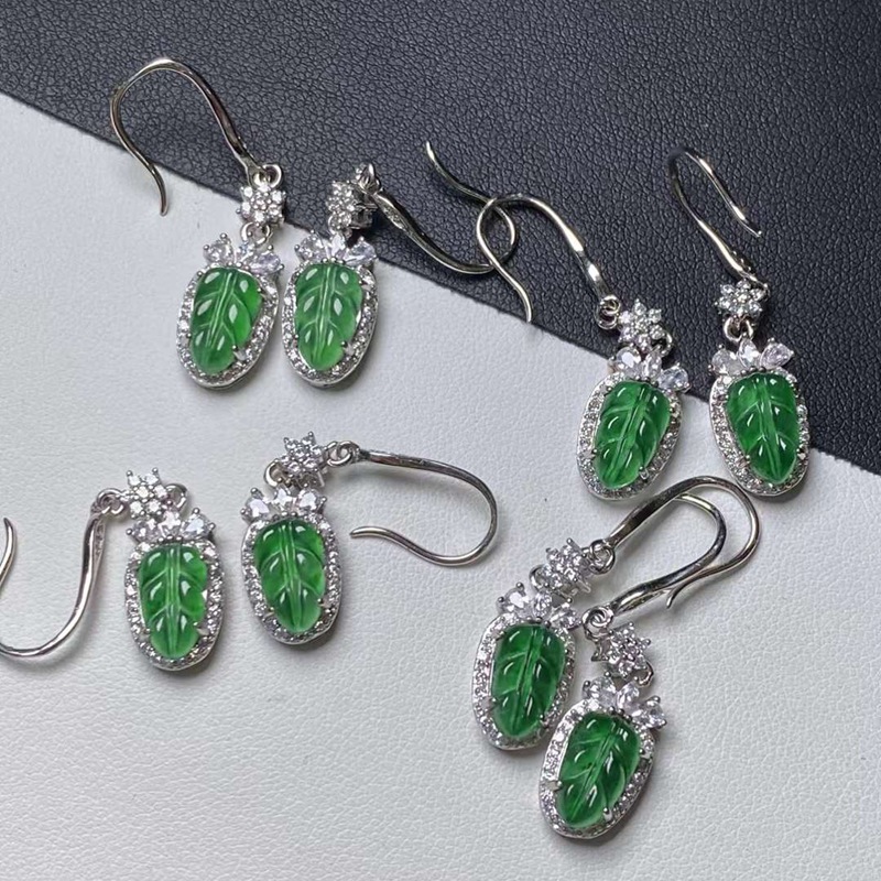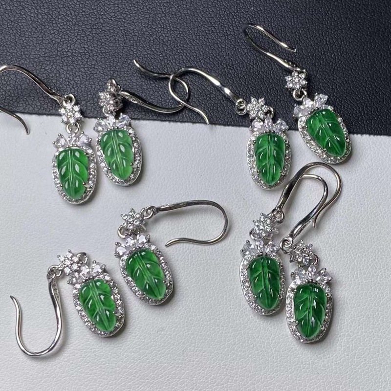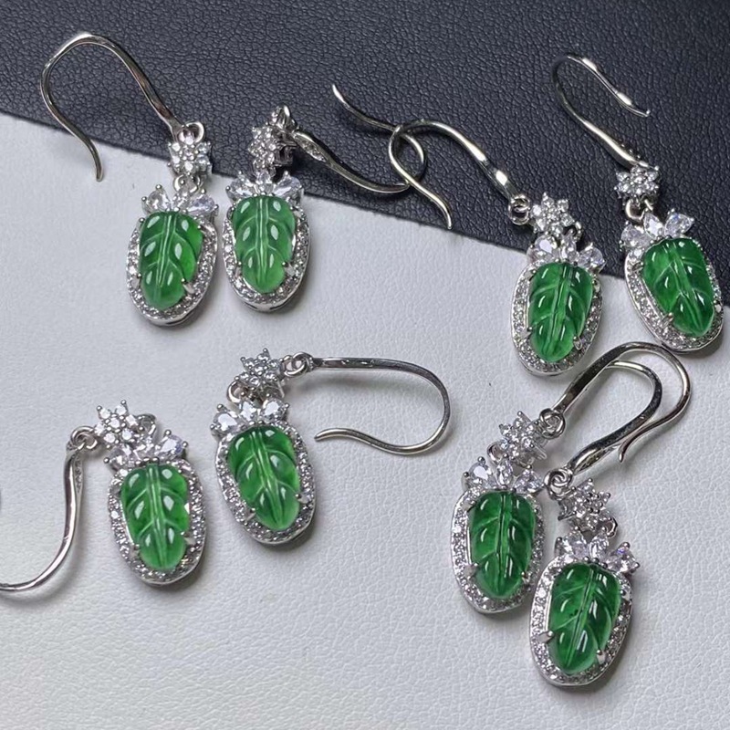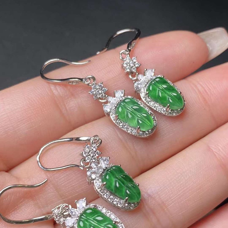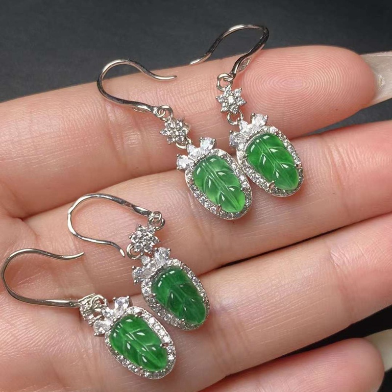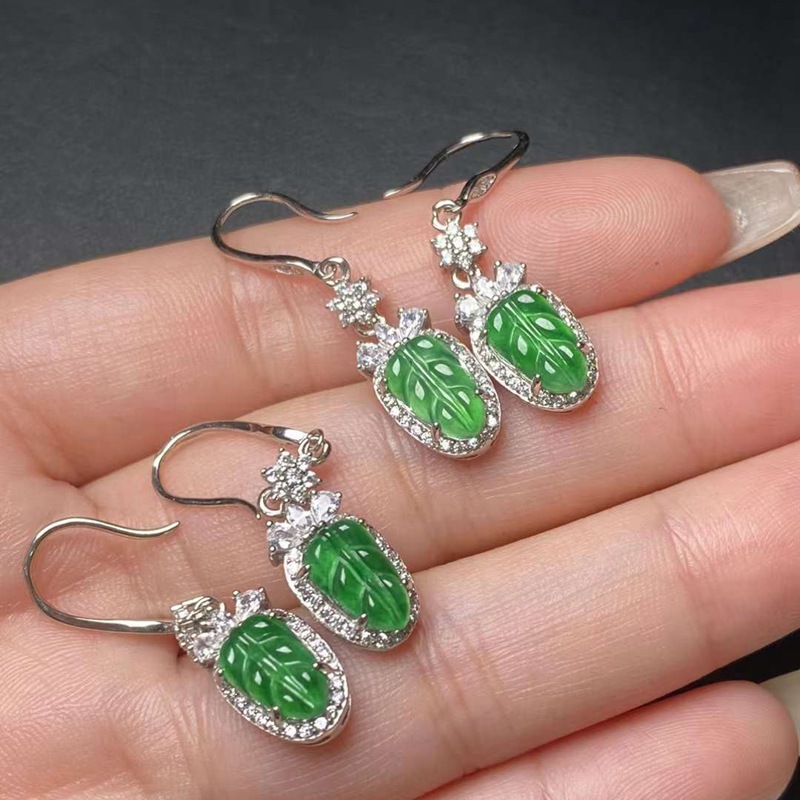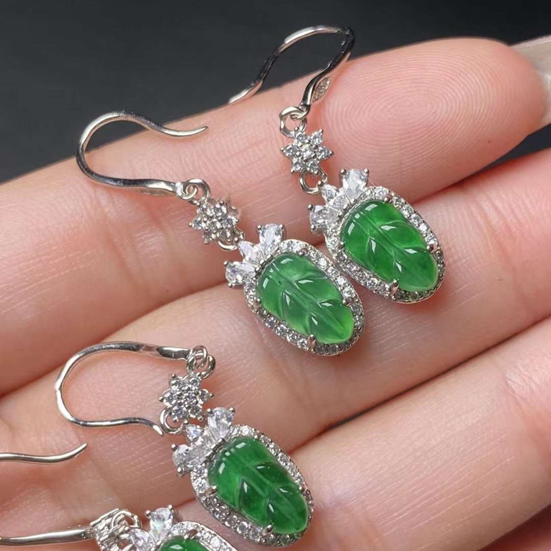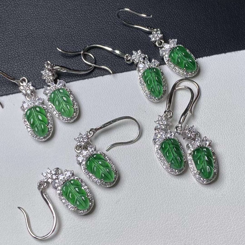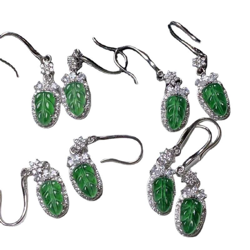 Оптовая продажа натуральных изумрудных водяных и красочных продуктов, полных 925 серебряных инкрустированных листьев Изумрудные серьги с сертификатом
