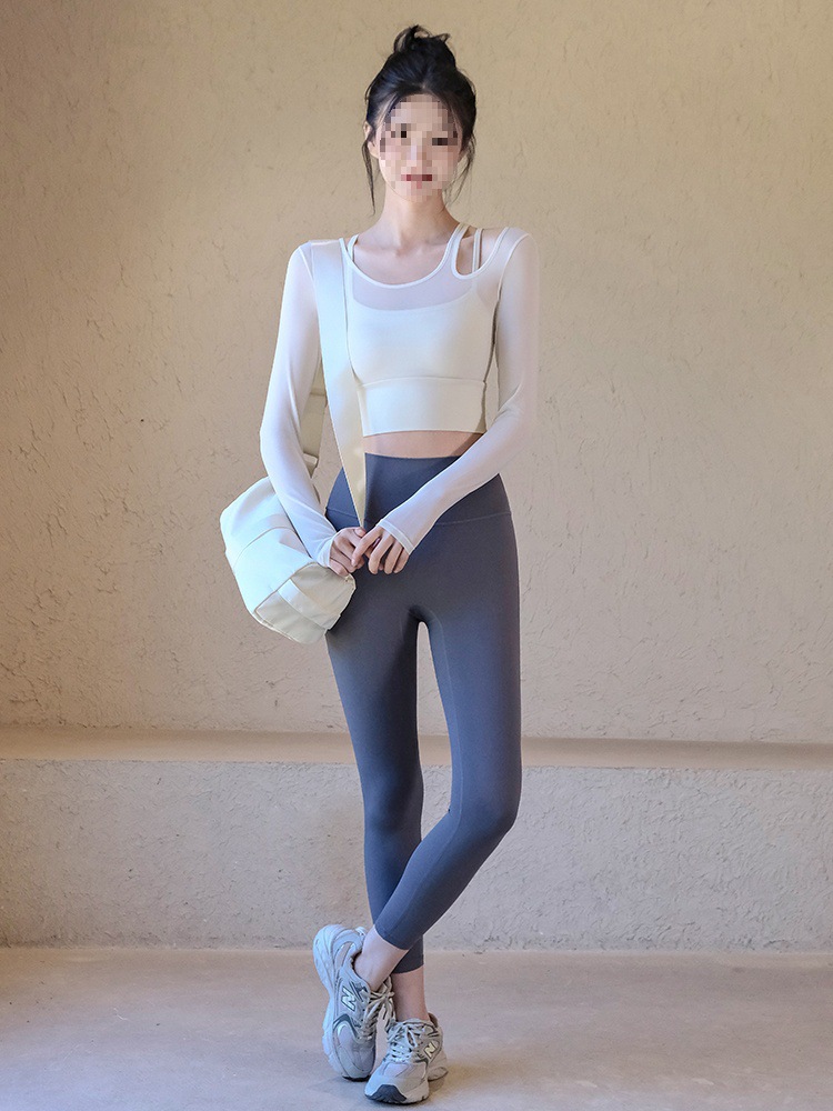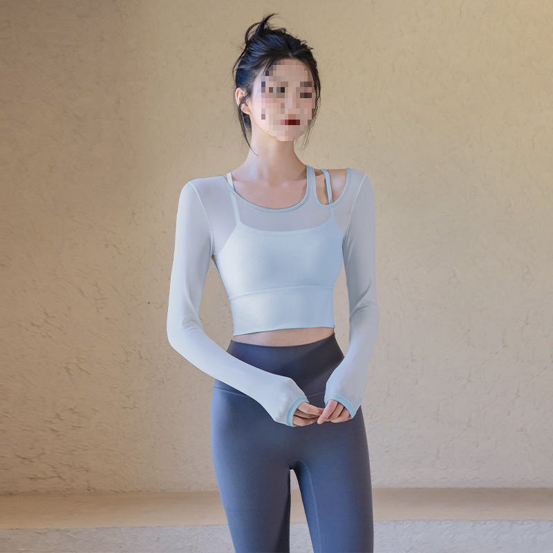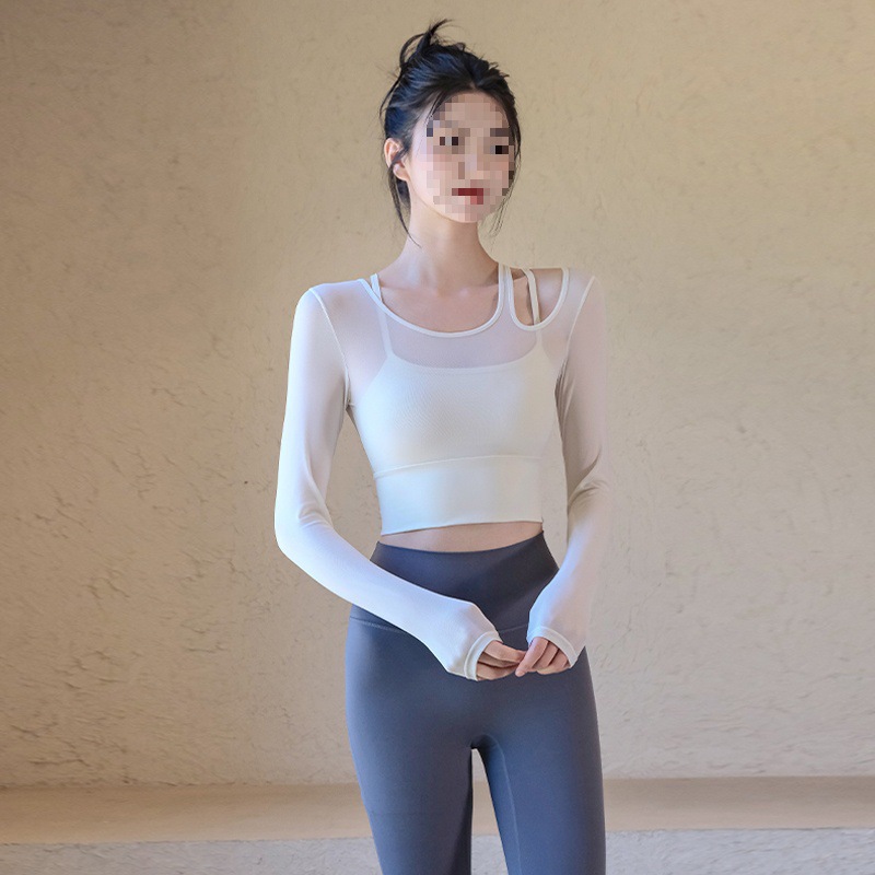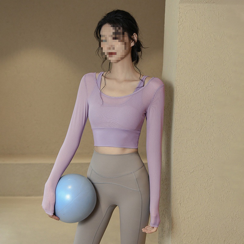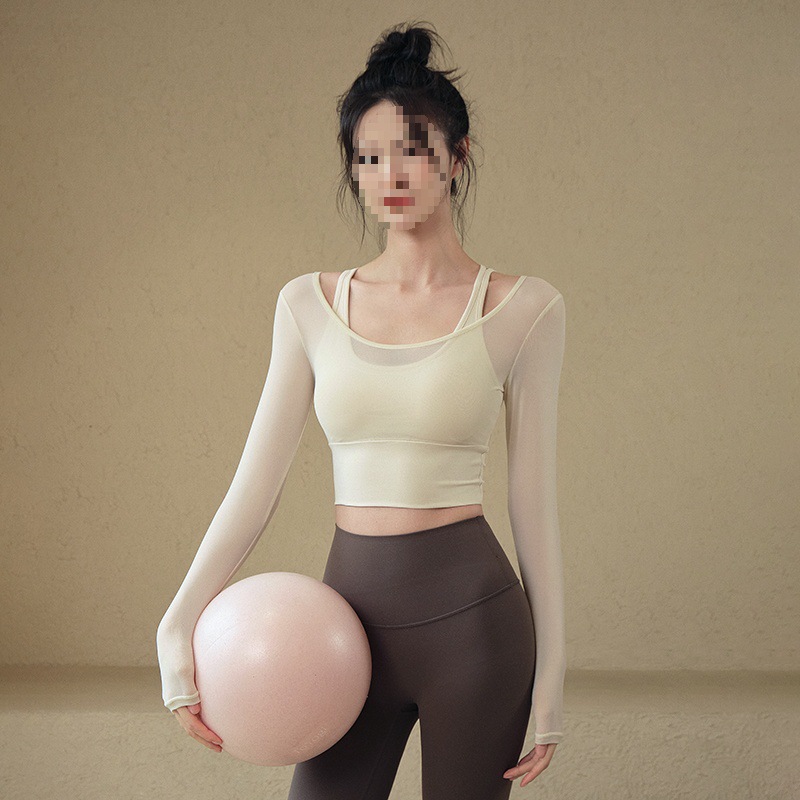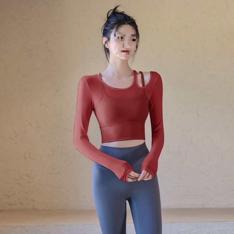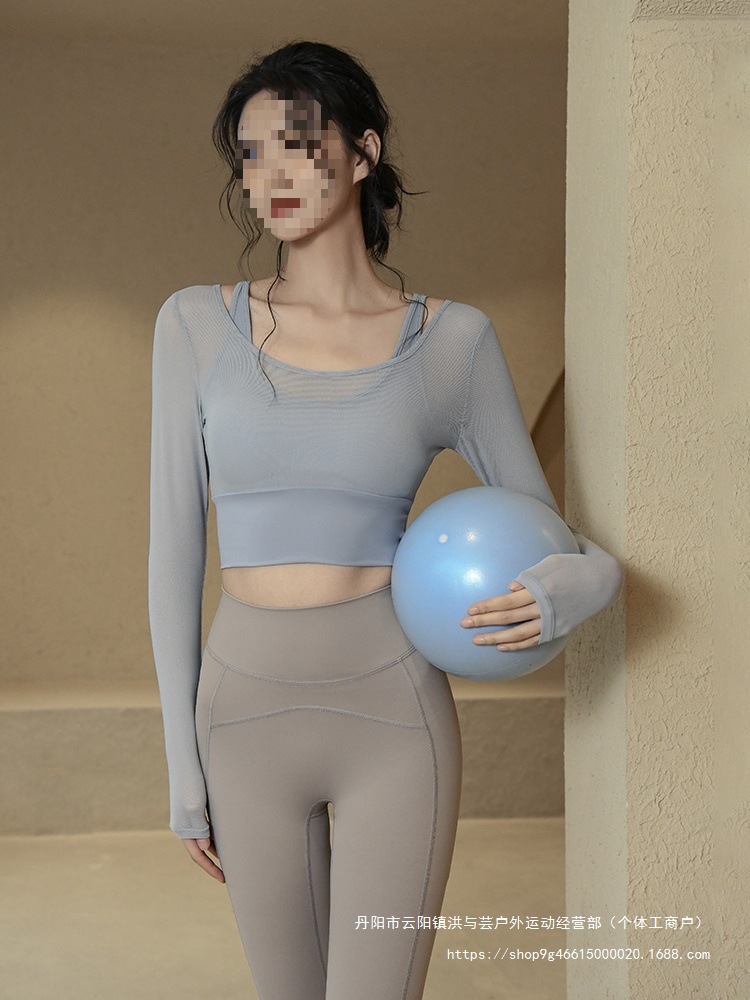 Одежда для йоги, женские летние спортивные топы с нагрудными подушечками, облегающие, для похудения, с длинными рукавами, модные, для тренировок по бегу, оптовая продажа