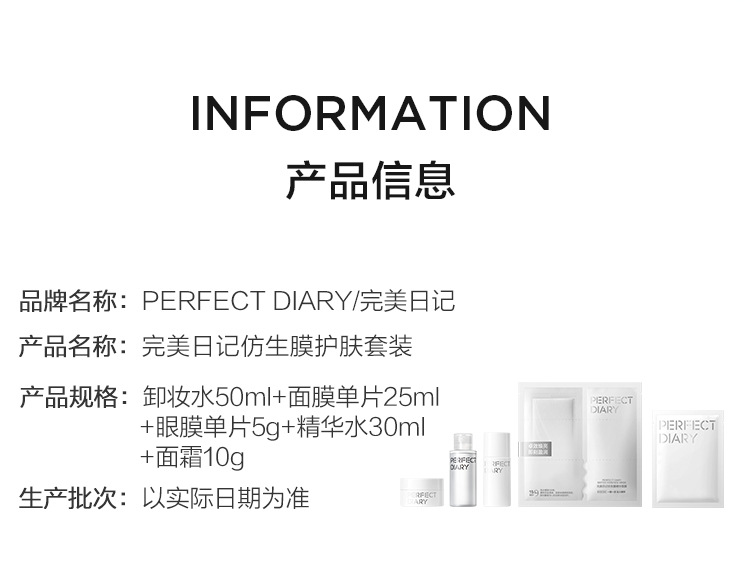 Набор для ухода за кожей Perfect Diary, дорожный формат, увлажняющий и питательный, легко носить с собой, бионическая мембранная маска-эссенция, крем, тонер