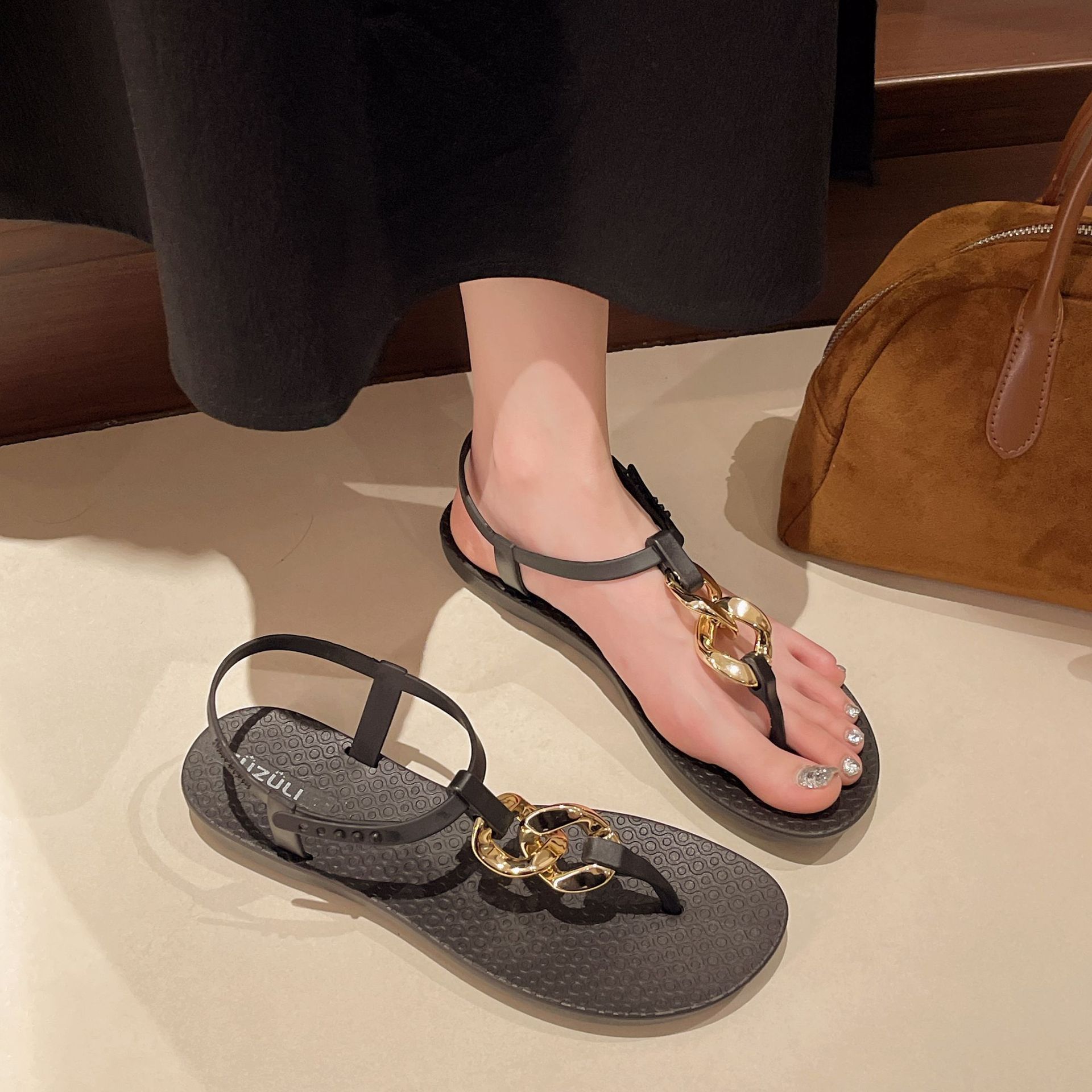 2025 новых женских летних сандалий, пляжная обувь, повседневные плоские шлепанцы, босоножки на пряжке, римский стиль