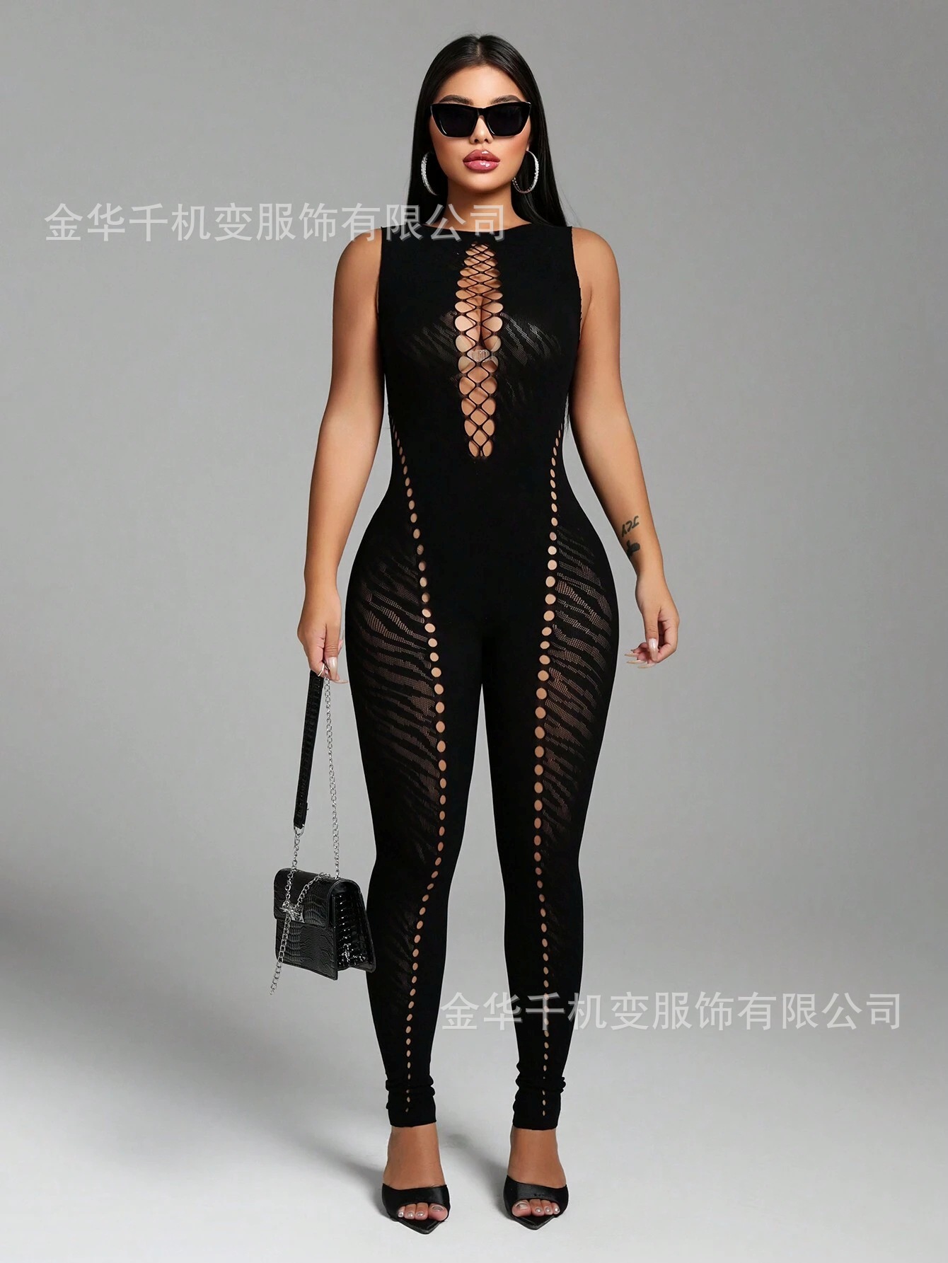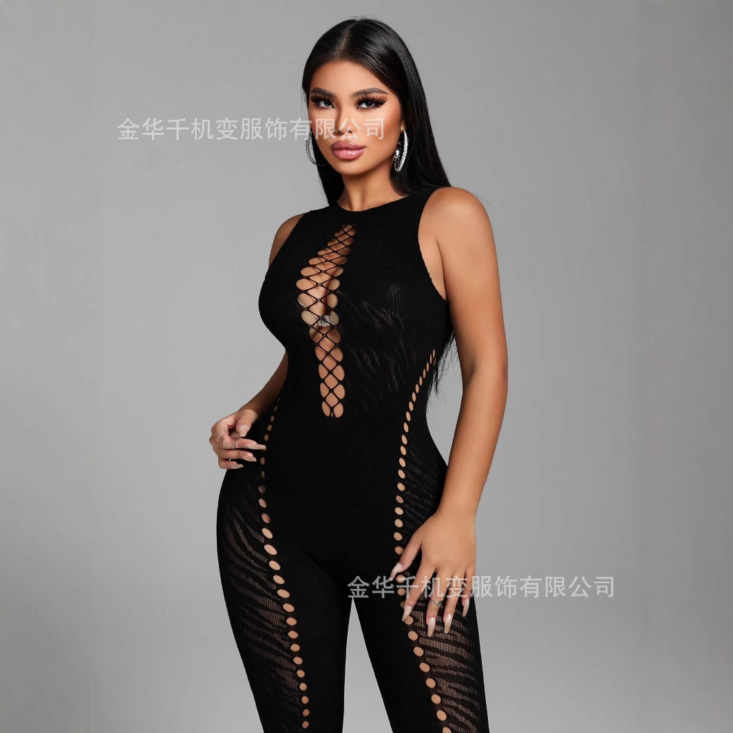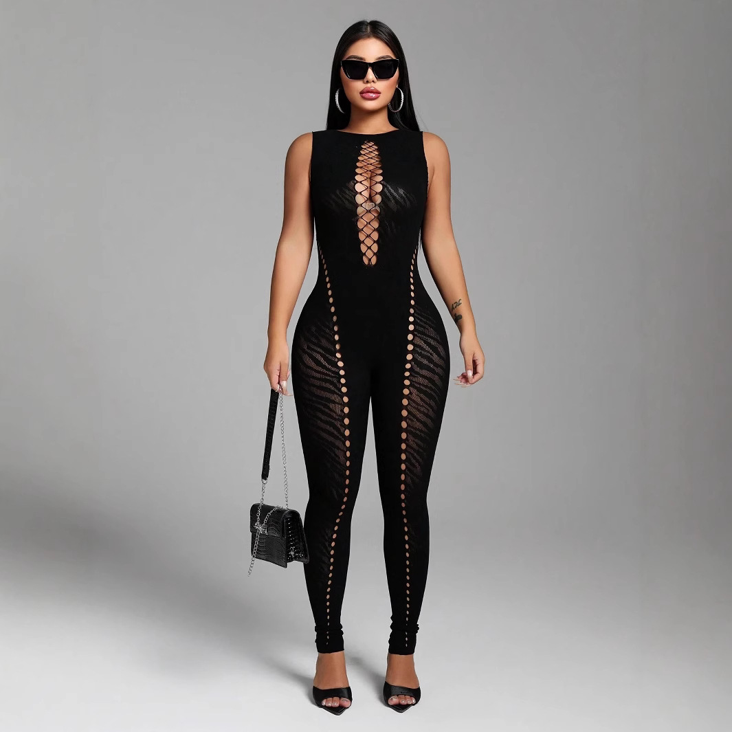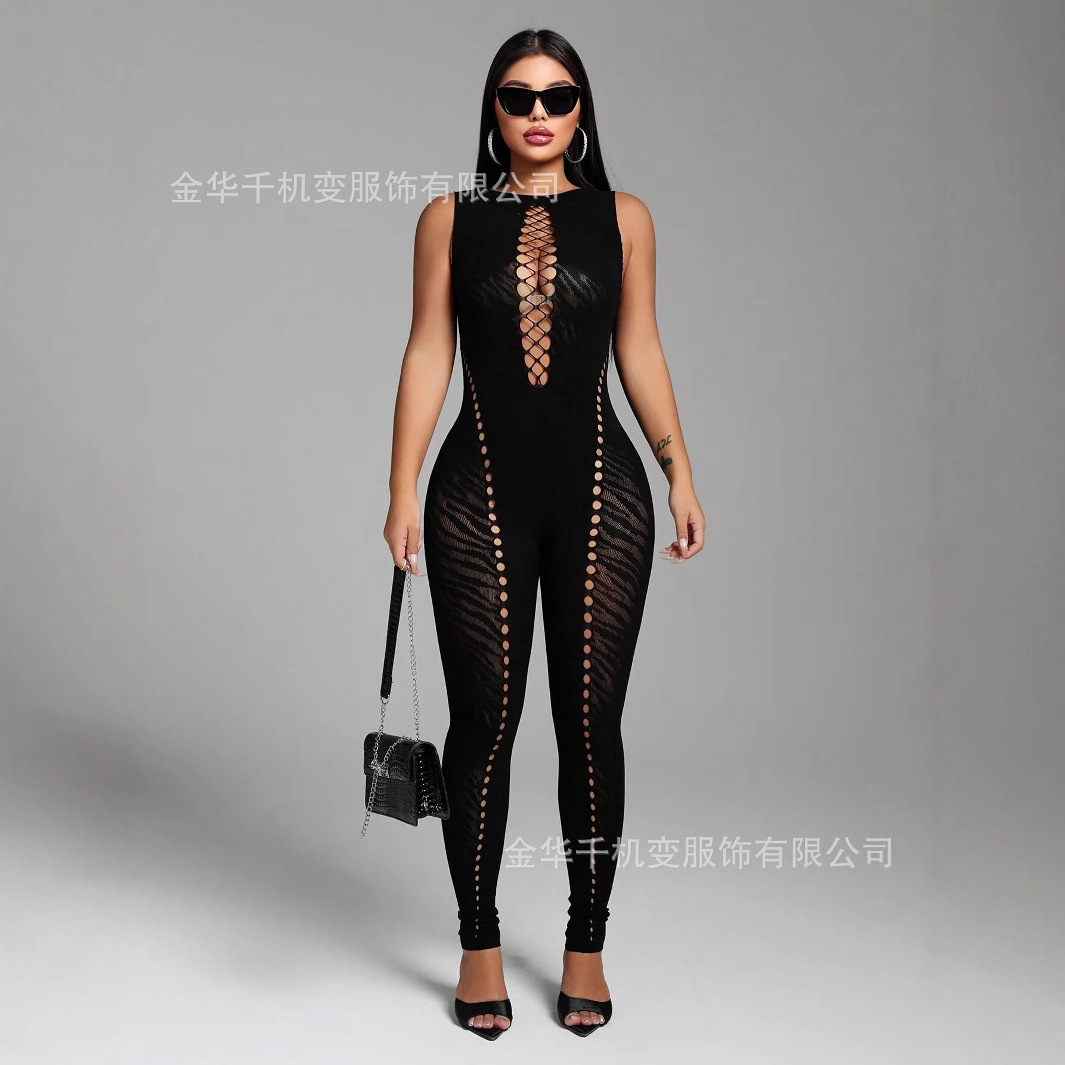Европейский и американский трансграничный весенний новый женский комбинезон без рукавов с вырезом в виде тигра, тонкий, с высокой талией, сексуальный модный комбинезон для женщин, весна 2025 г.