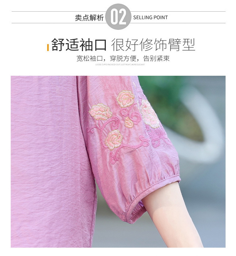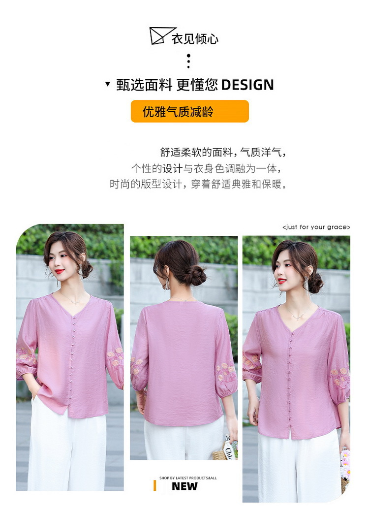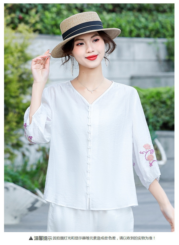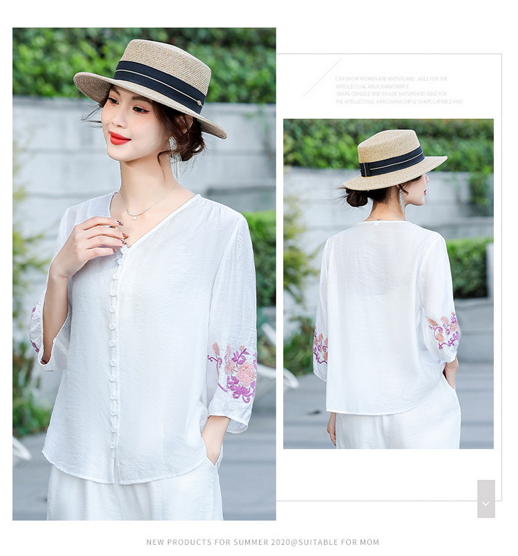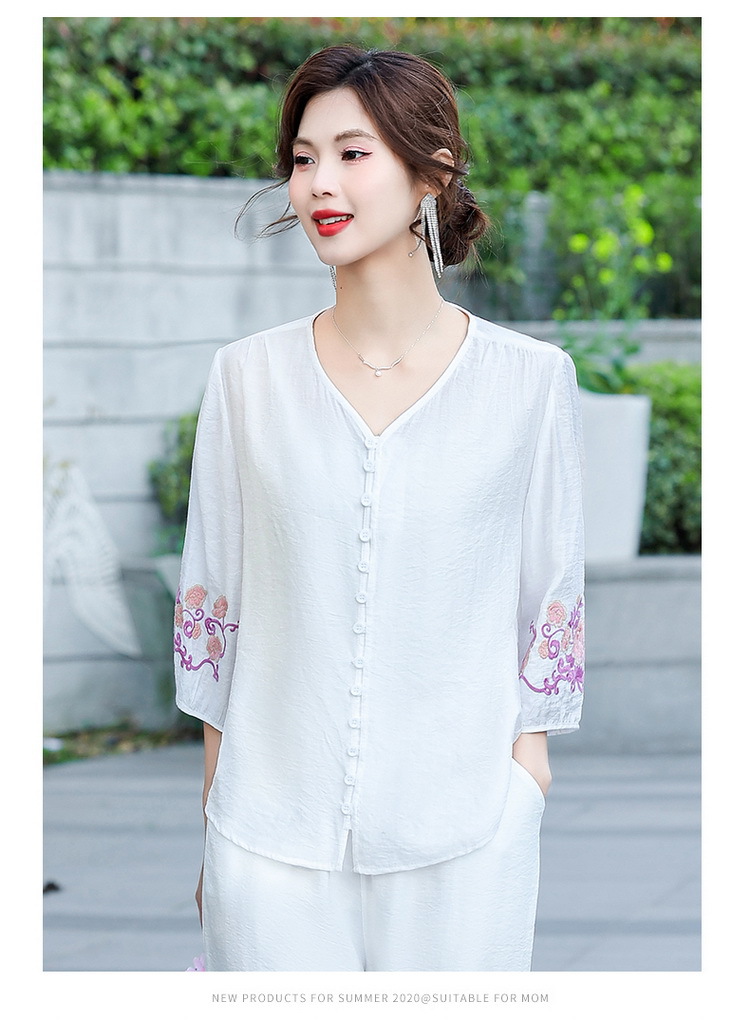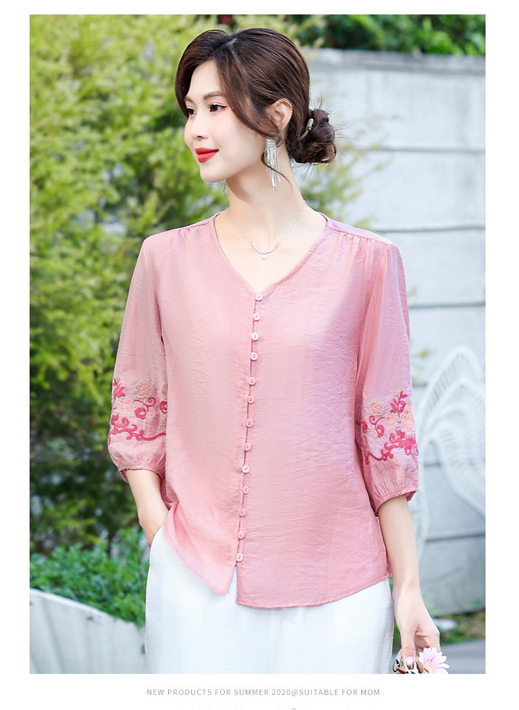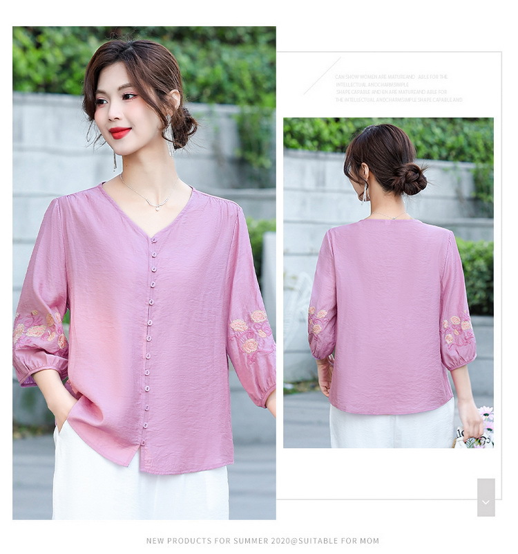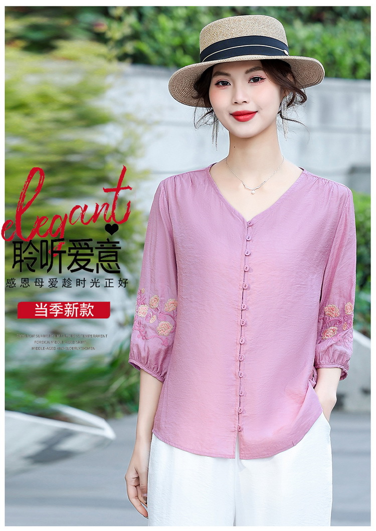 Летние топы в китайском стиле ретро 2025 года, женские рубашки в этническом стиле с вышивкой, больших размеров, с V-образным вырезом, тонкие, три четверти рукава