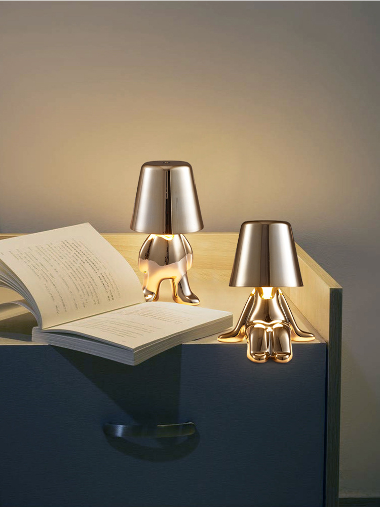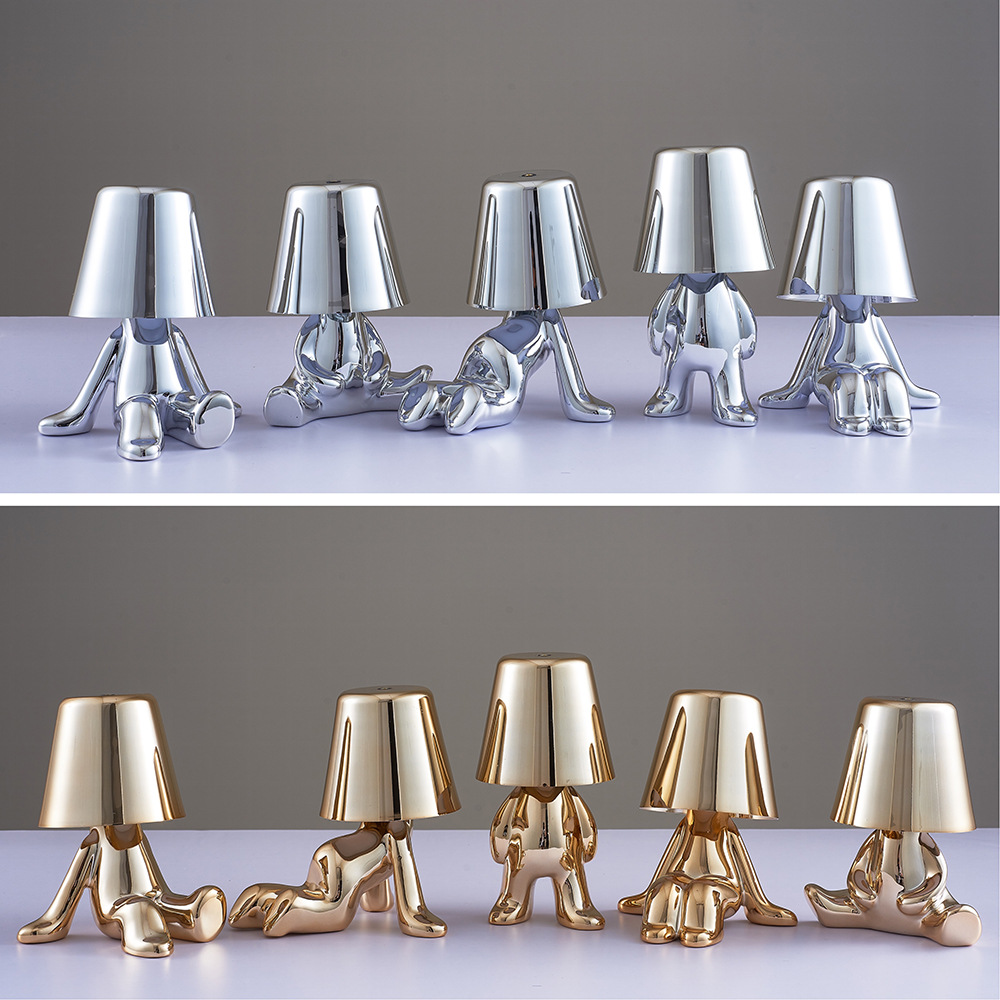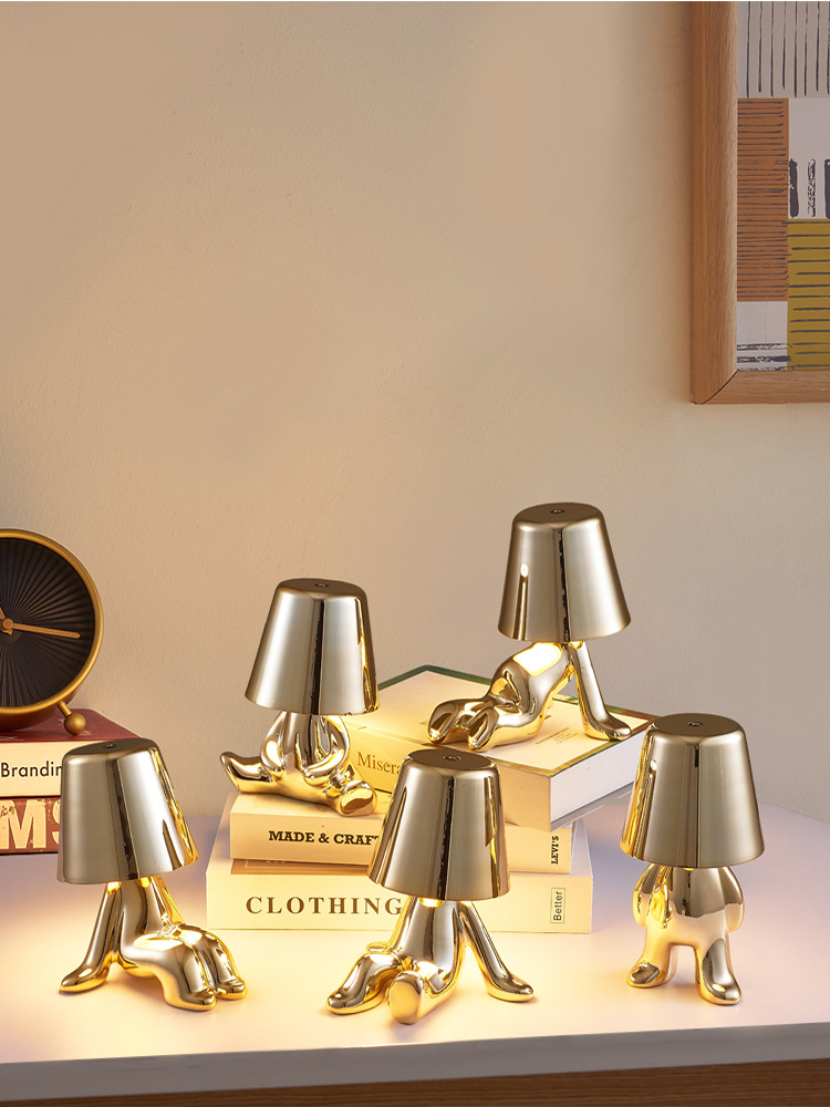 Маленький Золотой Человек, перезаряжаемая настольная лампа, креативная лампа Thinker, современный простой перезаряжаемый ночник, окружающий свет
