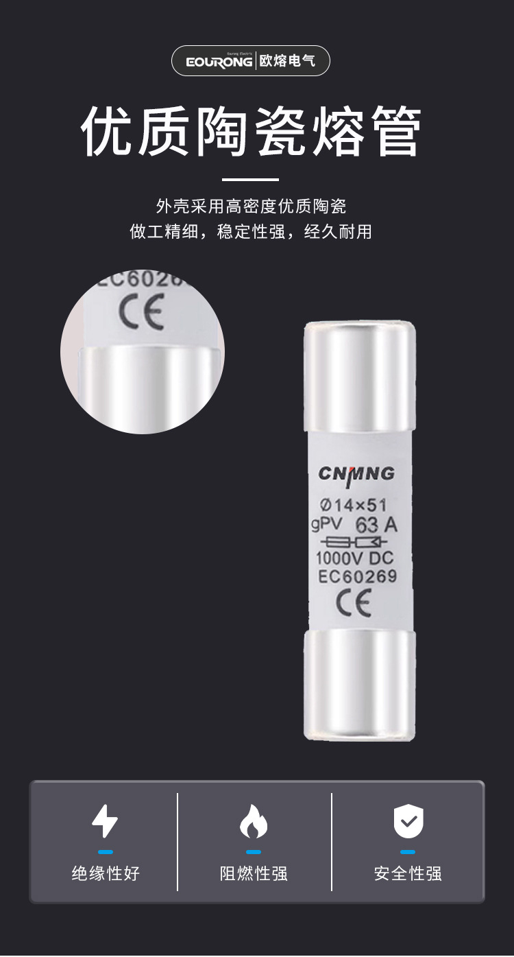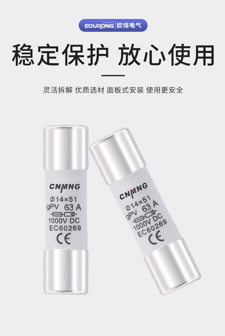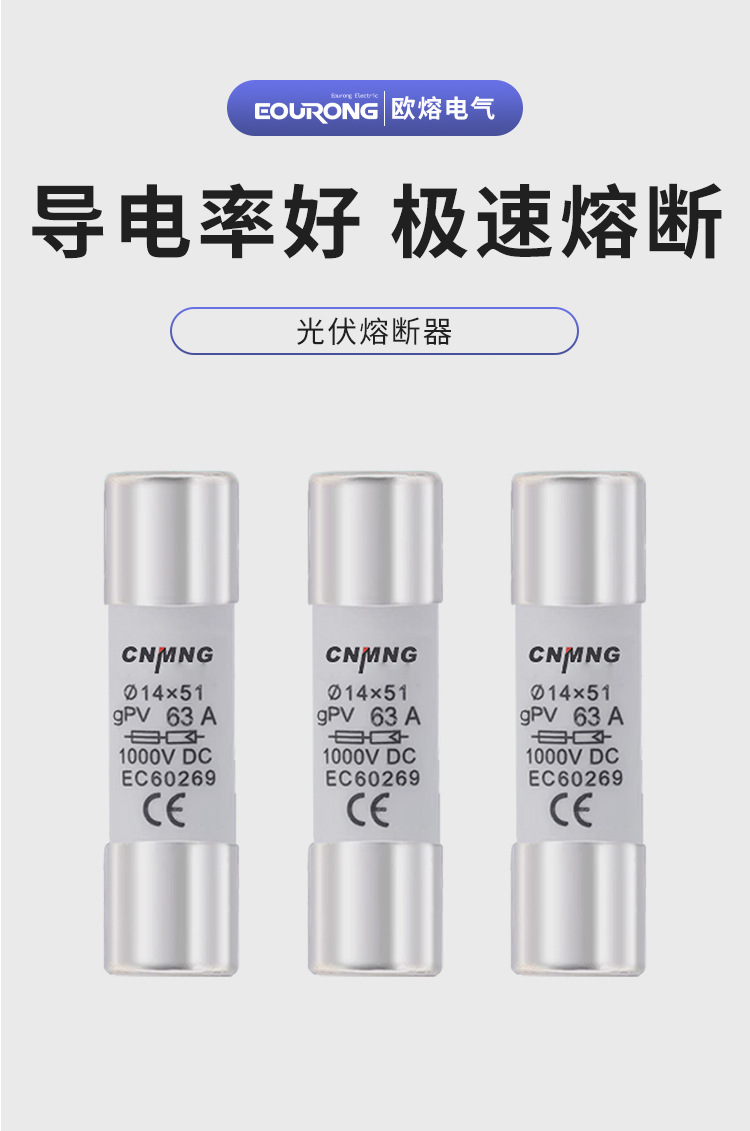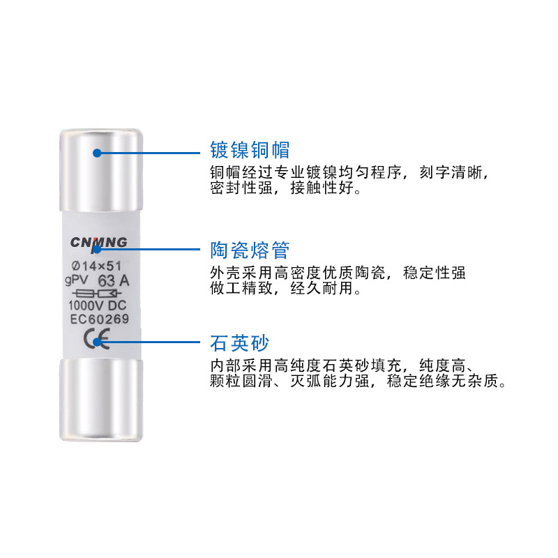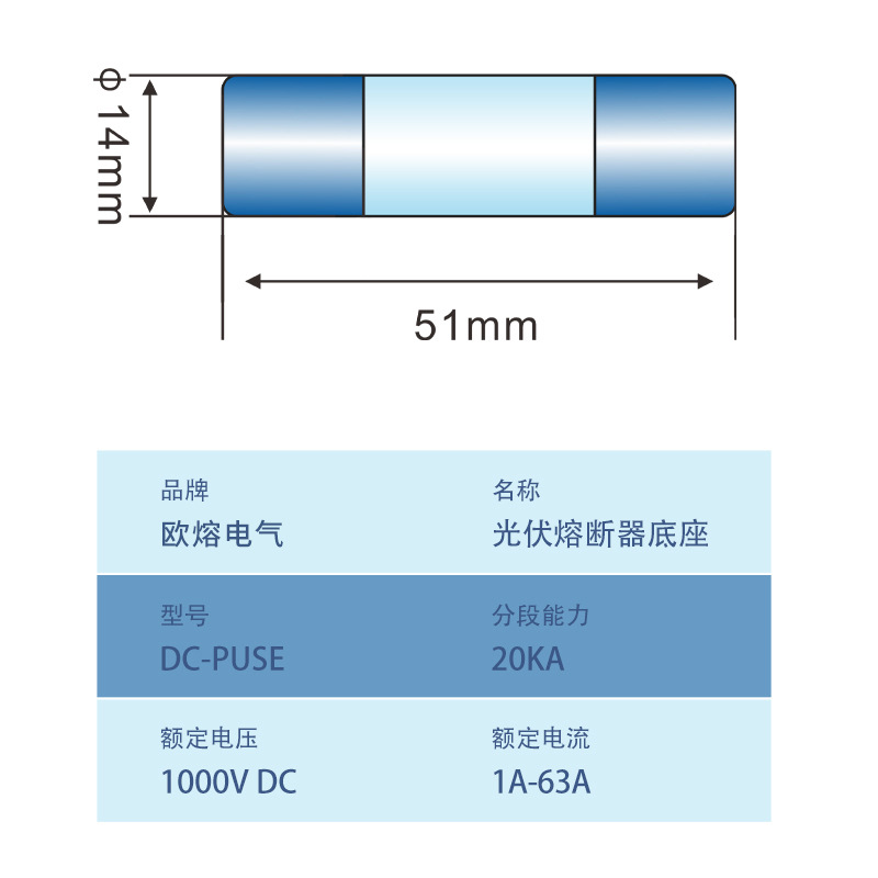 Предохранитель постоянного тока DC1000V, фотогальванический предохранитель, предохранитель 14*51, сильноточный 63А с основанием