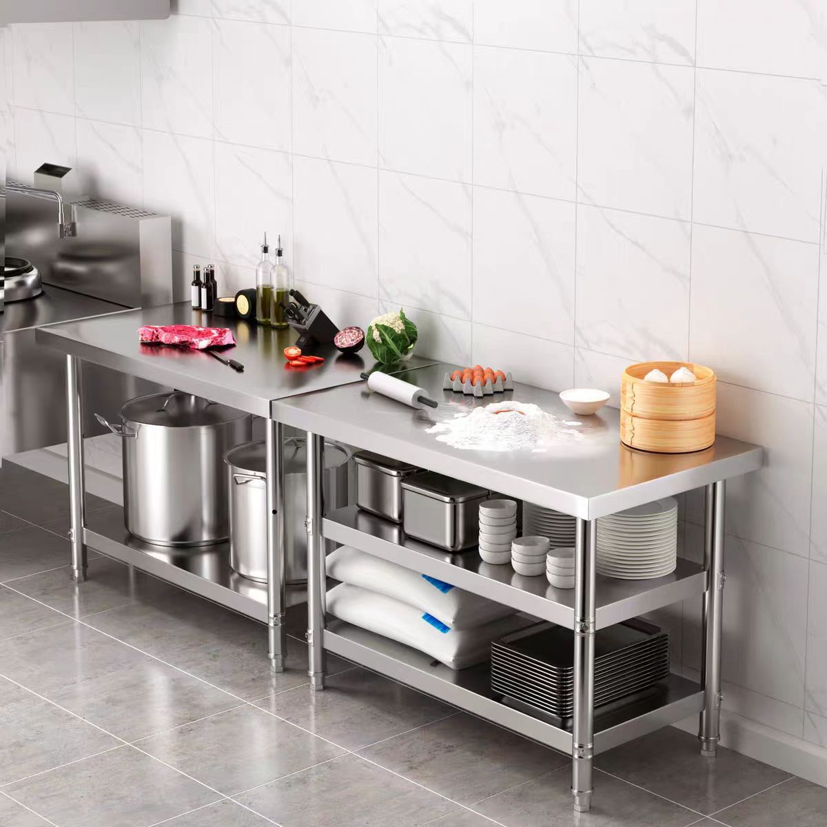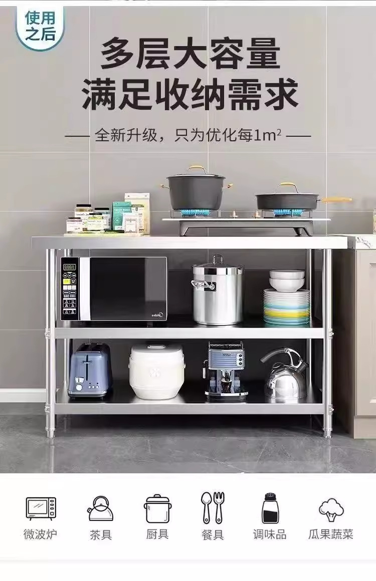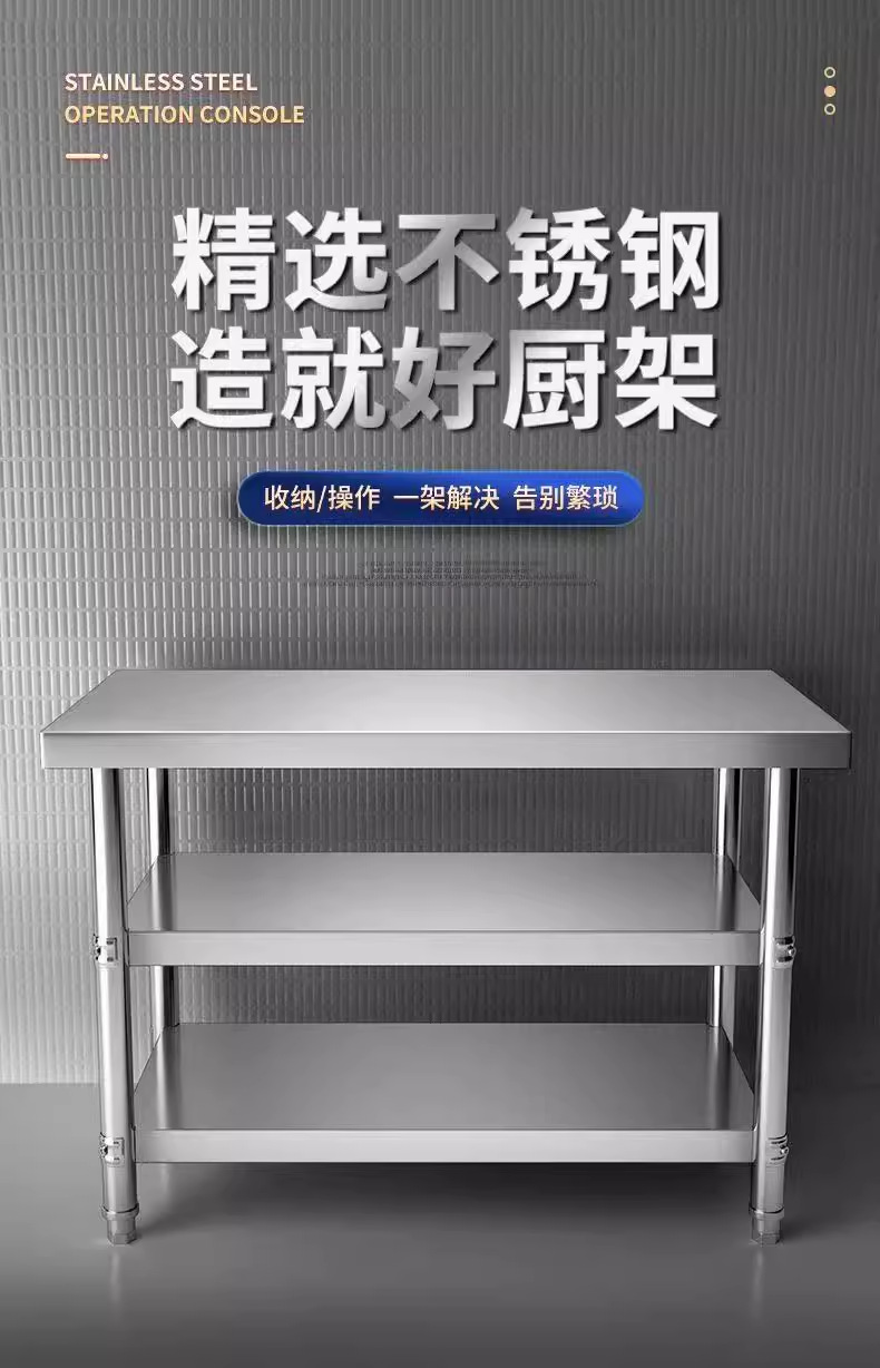 Двухслойный верстак из нержавеющей стали, кухонный операционный стол, разделочная доска, трехслойный утолщенный стол из нержавеющей стали, упаковочный стол, погрузочный стол